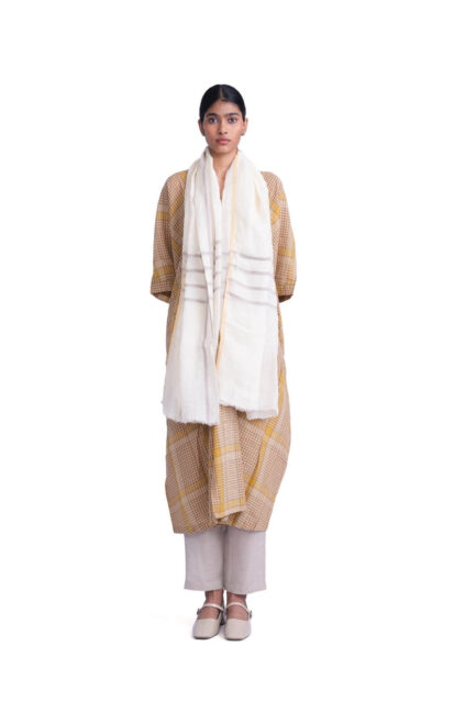 The Blush khadi silk dupatta is decorated with beautiful hand applique of florals and birds with delicate embroidered details on the borders. Edged with subtle Kinaari, it is perfect for a dress up. The length os the dupatta is 2.75 meters.