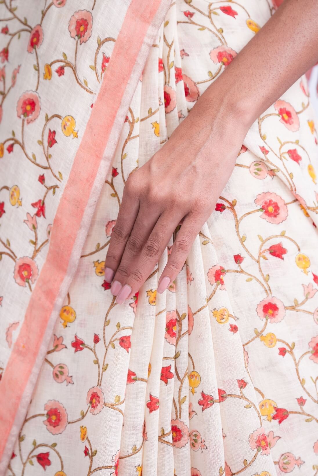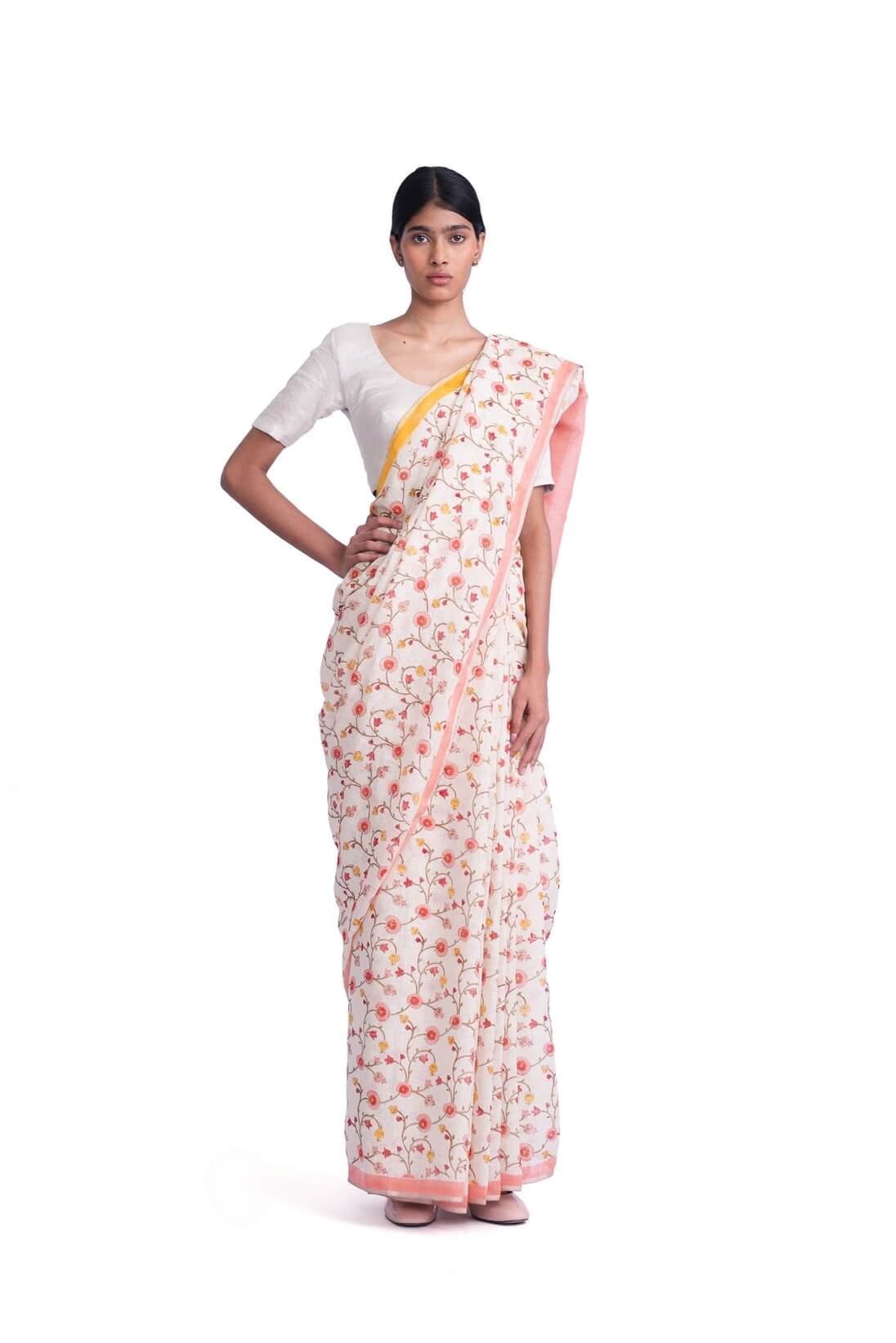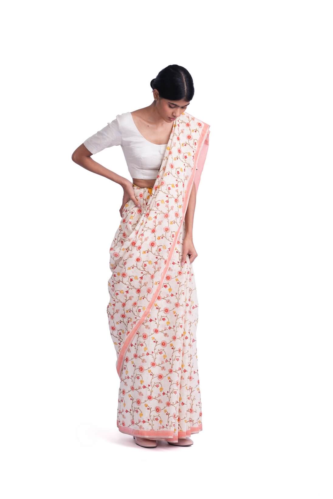 Floral Print Linen Sari