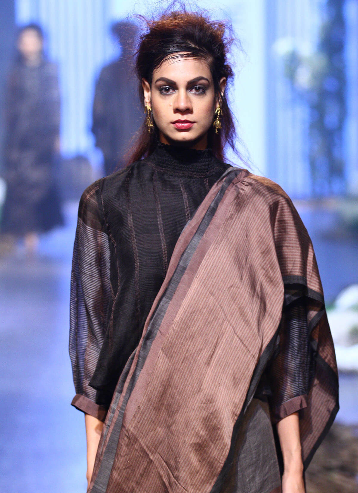 With our winter festive collection Blur, we worked intensively with the colour black and created a romantic soft collection using form and subtle design. The fine play of linen with silk, wool and cotton brings out beautiful textures and prints that make ensembles with a global appeal!