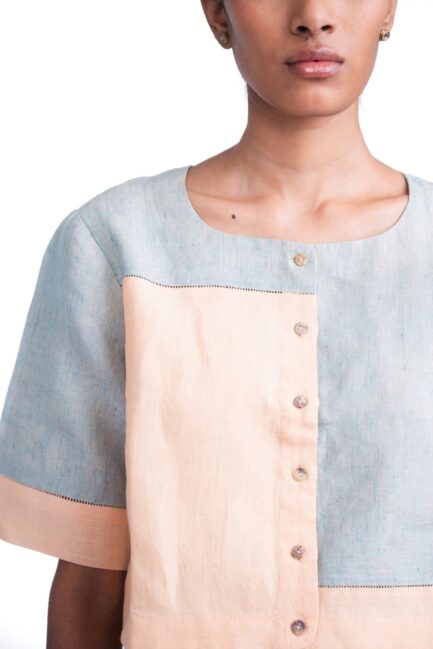 Colorblock Linen Blouse