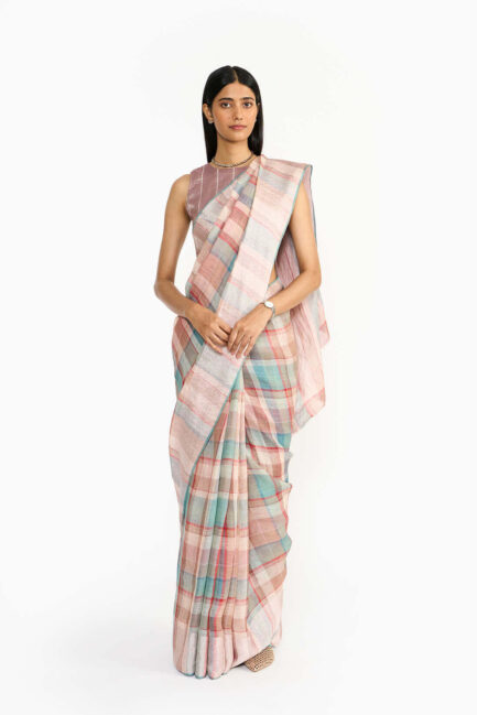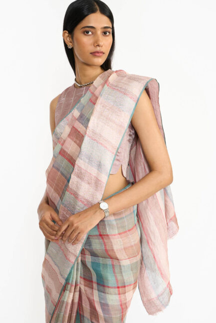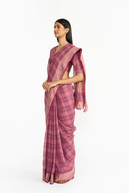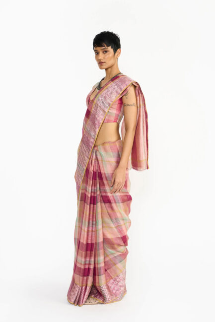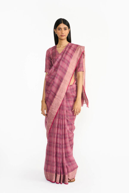 Mauve Plaid Sari