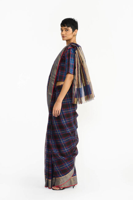 Berry Plaid Sari