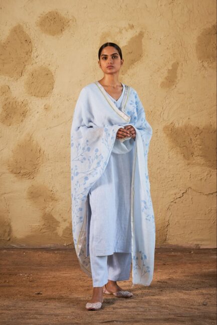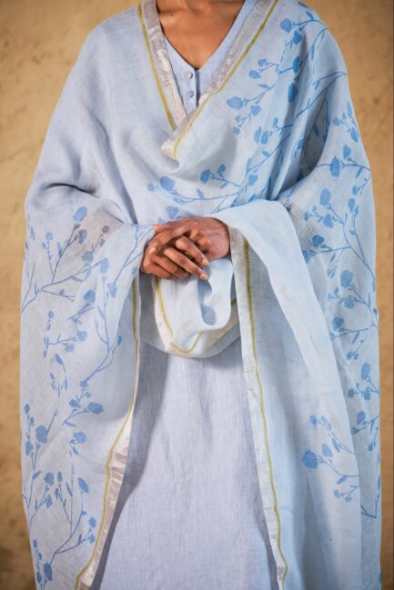 Sky Blue Khejri Linen Dupatta
