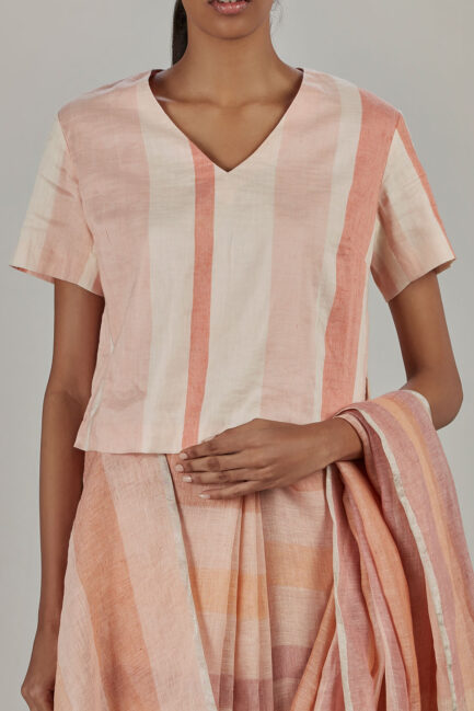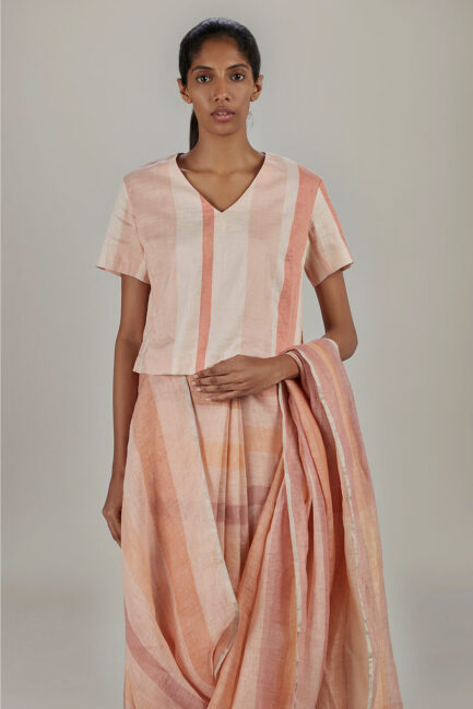 • Bronze And Scarlet Striped Khadi Shirt