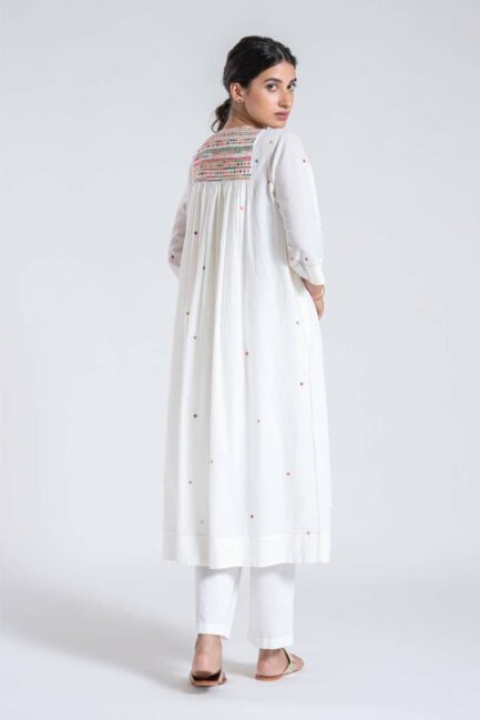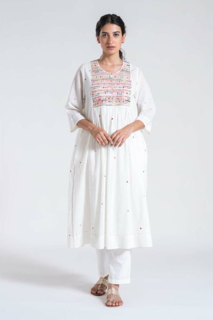 • Ivory Moti Phool Embroidered Kurta Set