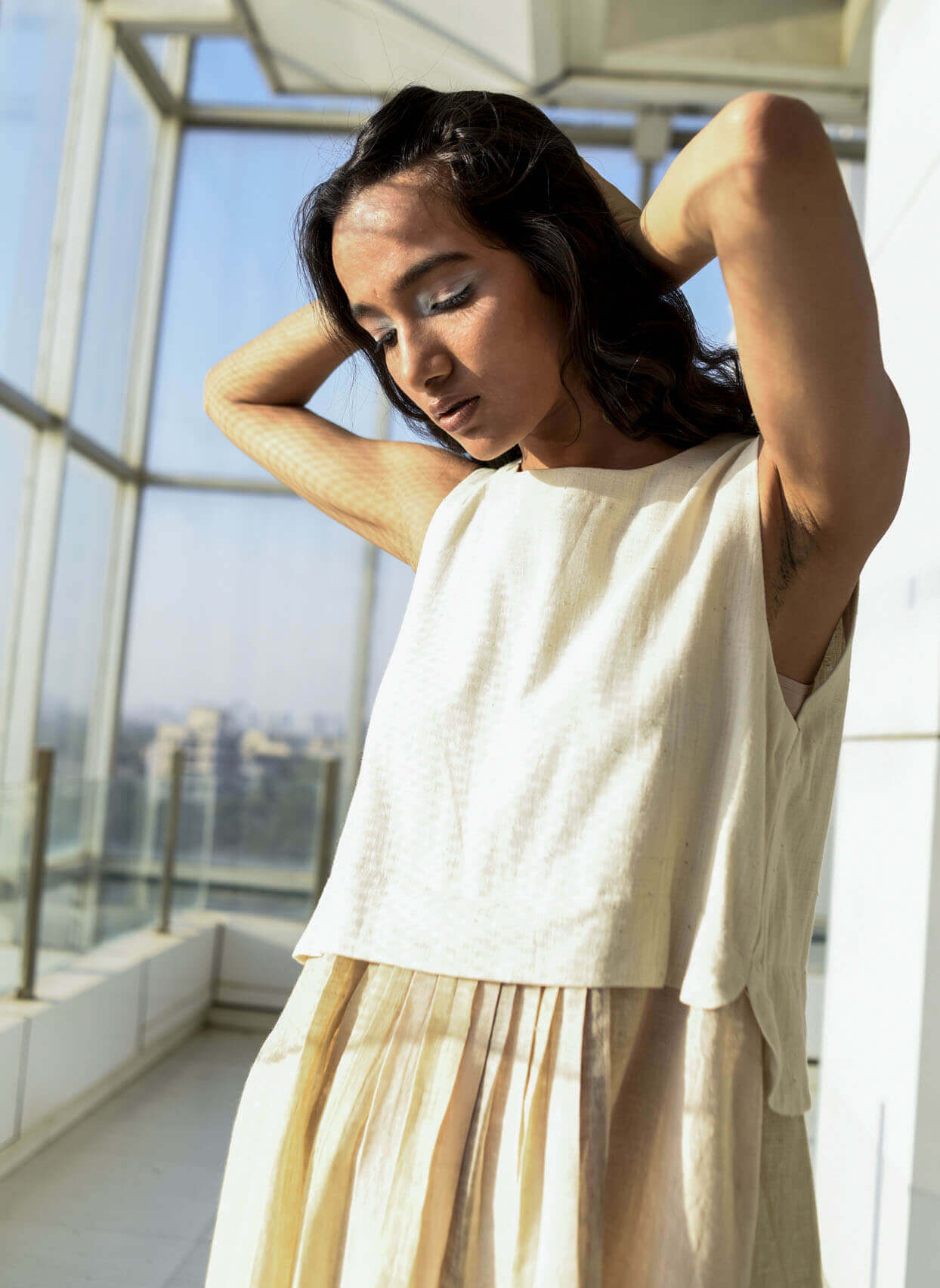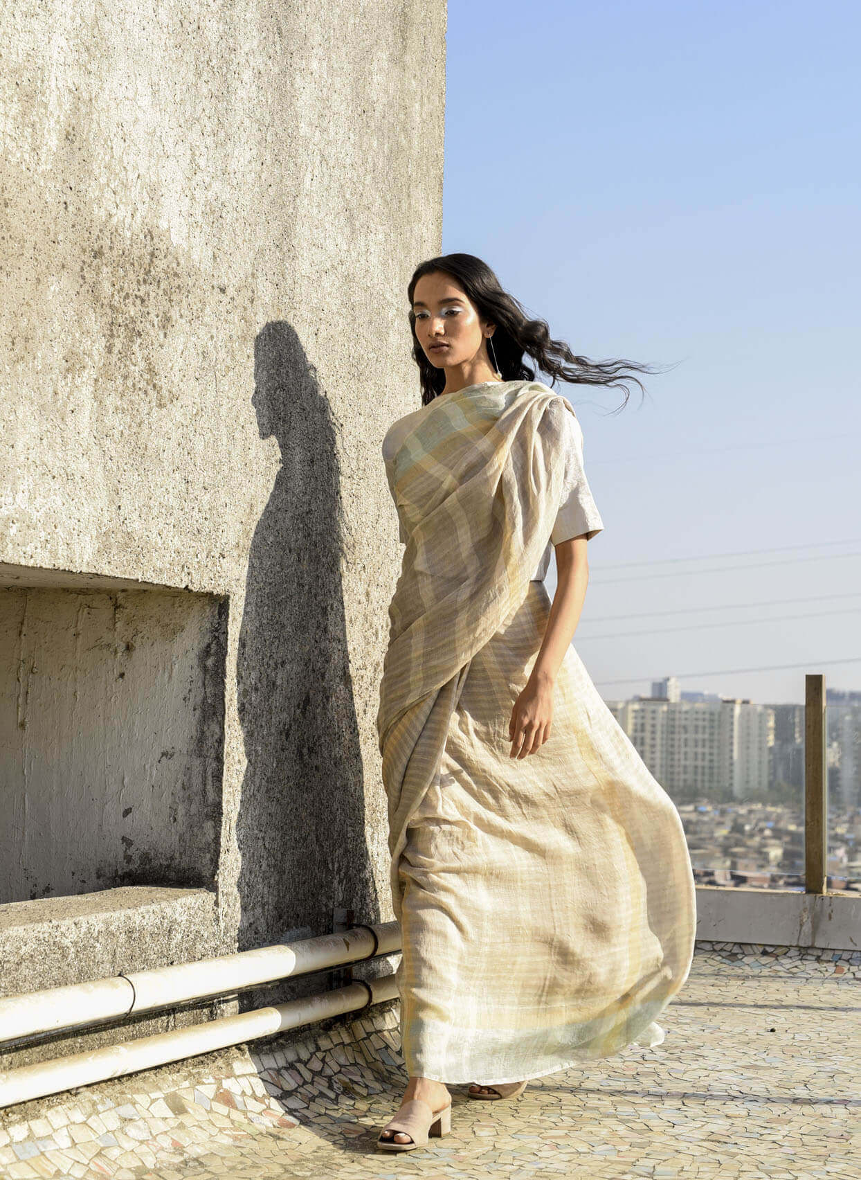 Natural Plaid Summer Linen Sari