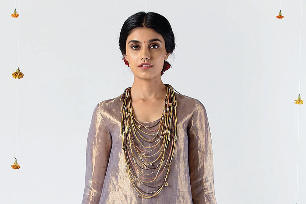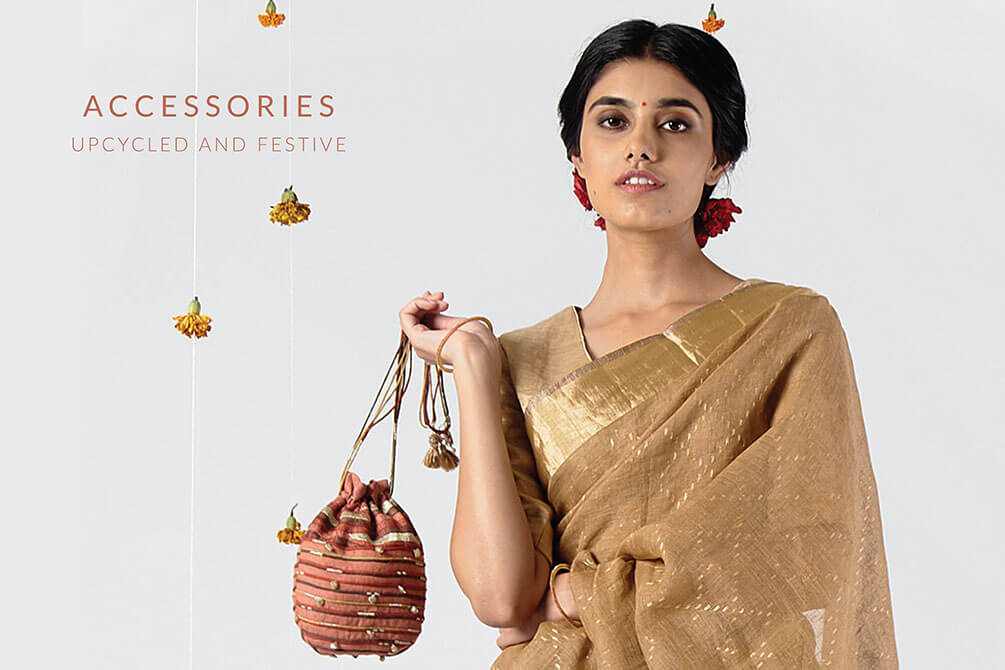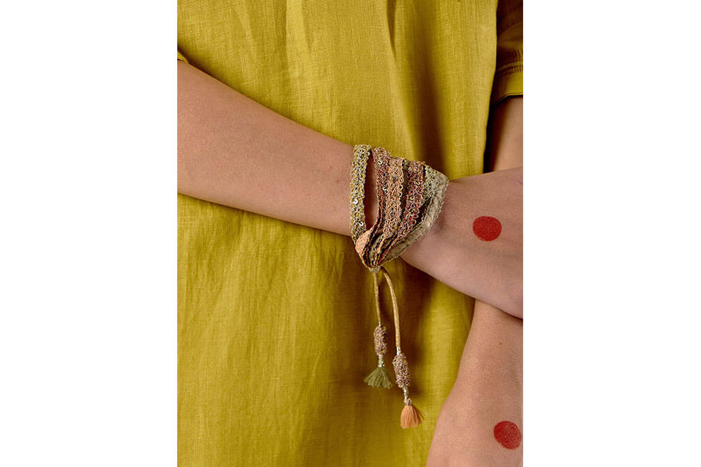 Naturally there is a certain amount wastage that happens in the process of construction. Lovingly handwoven and embroidered by our craftsmen, we want to give these fabrics a second life once after a garment is cut. This season, we are introducing our line of upcycled fabric jewellery—that perfectly falls in line with our festive line. You can coordinate pieces from the Zari collection or simply pick up something that falls in line with your everyday wardrobe. Joy is the power of storytelling.