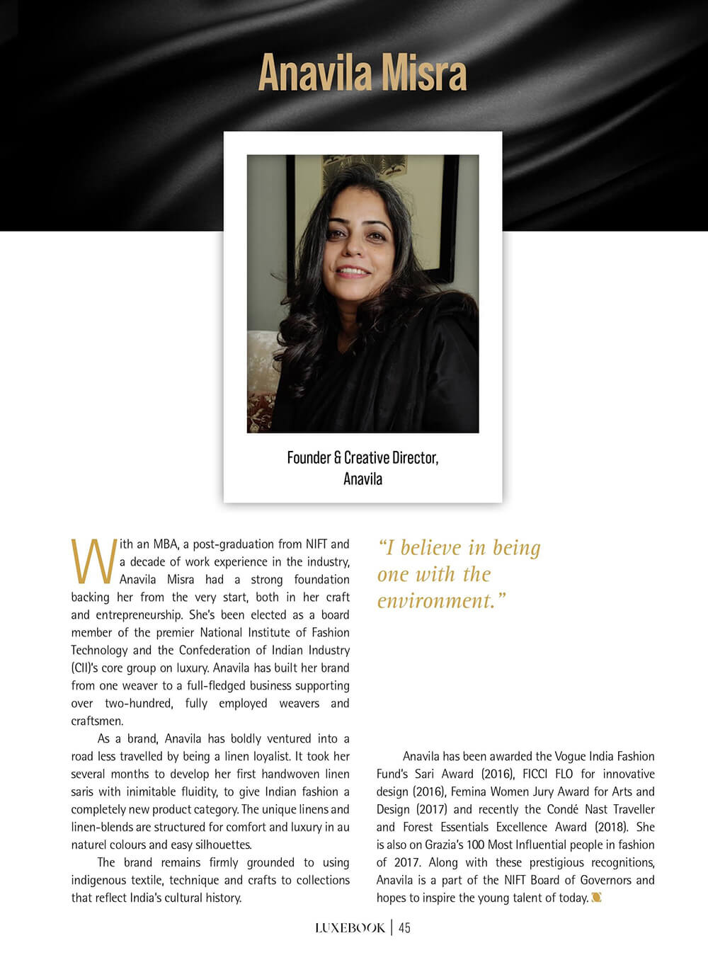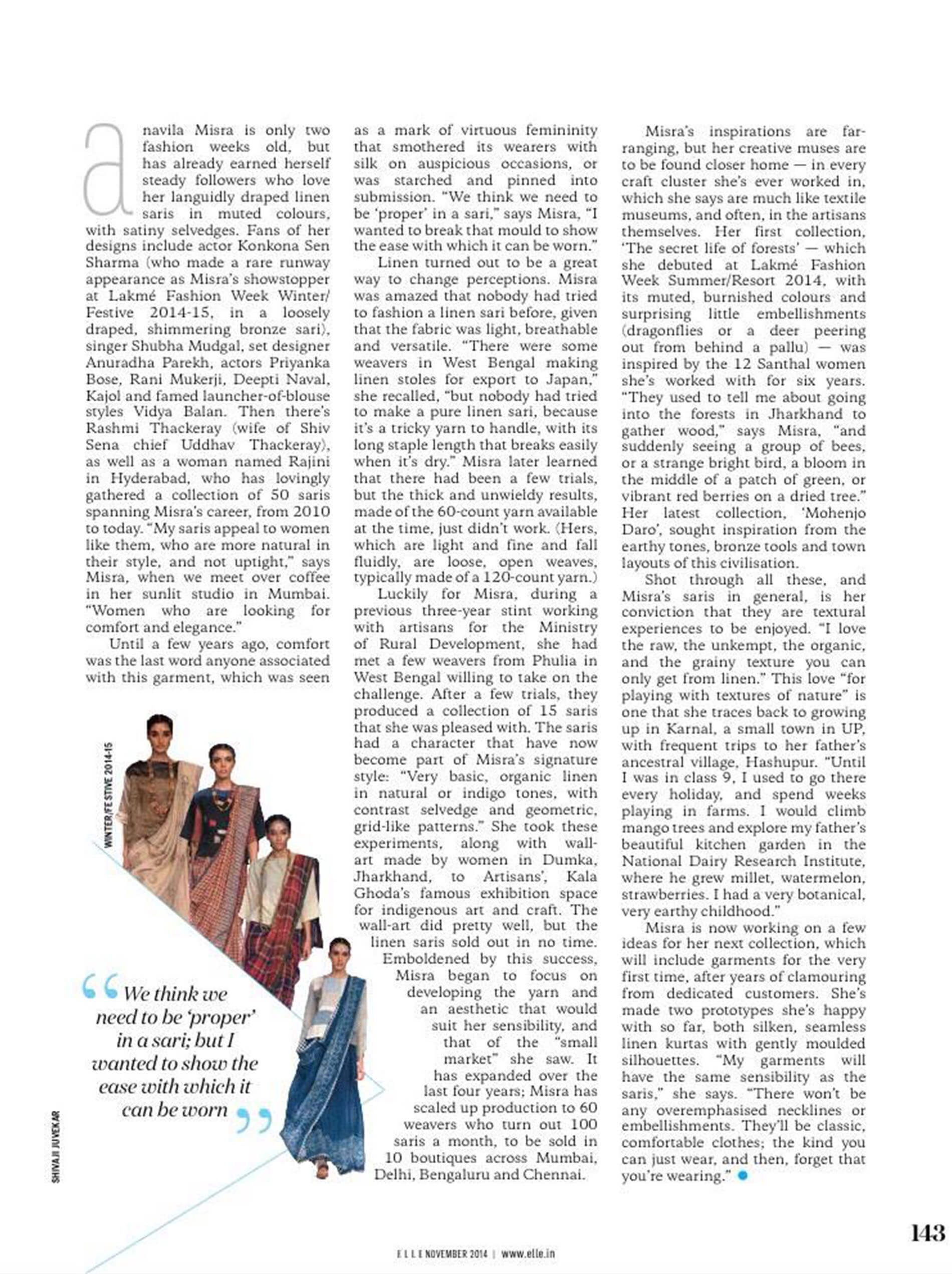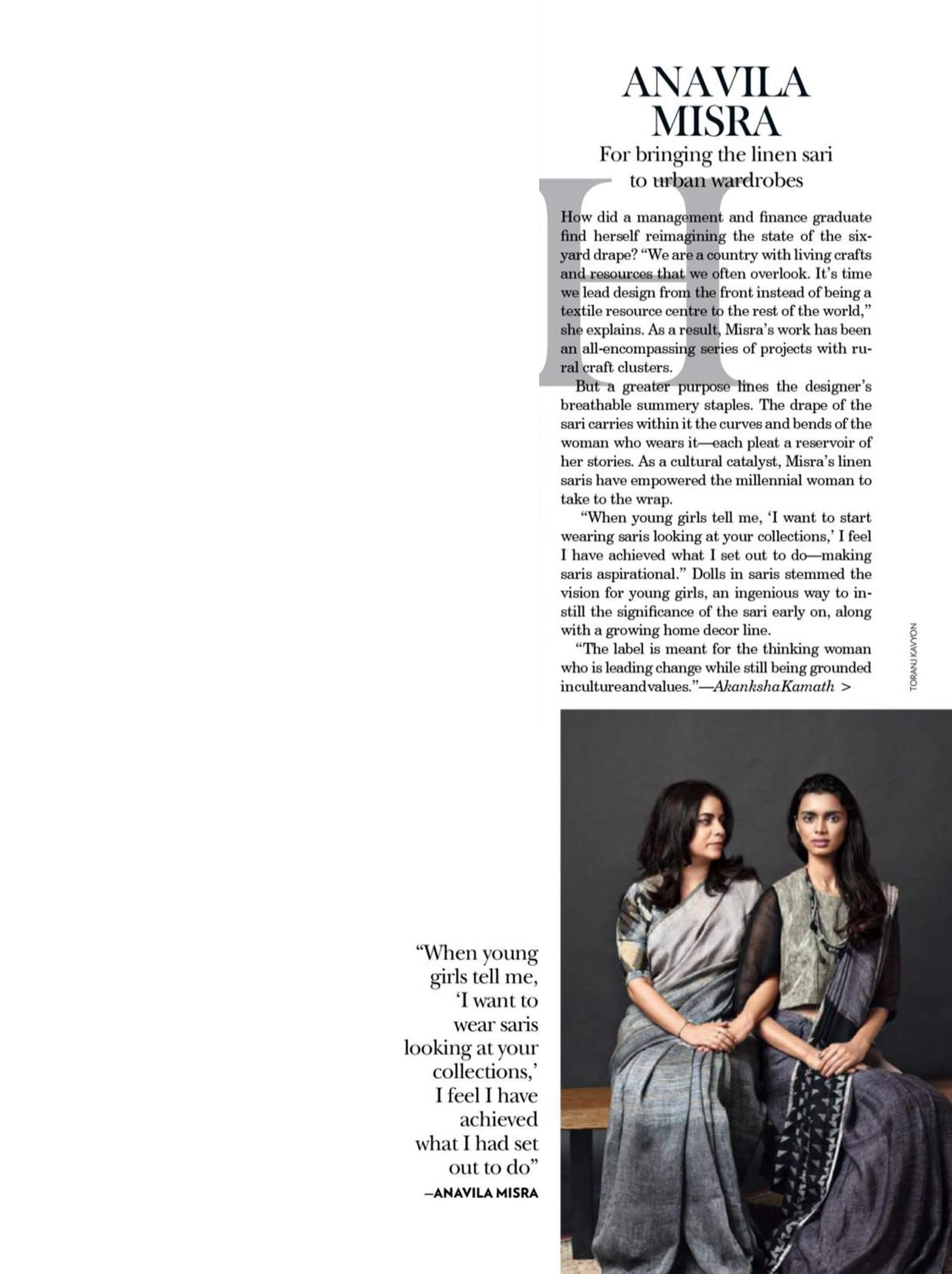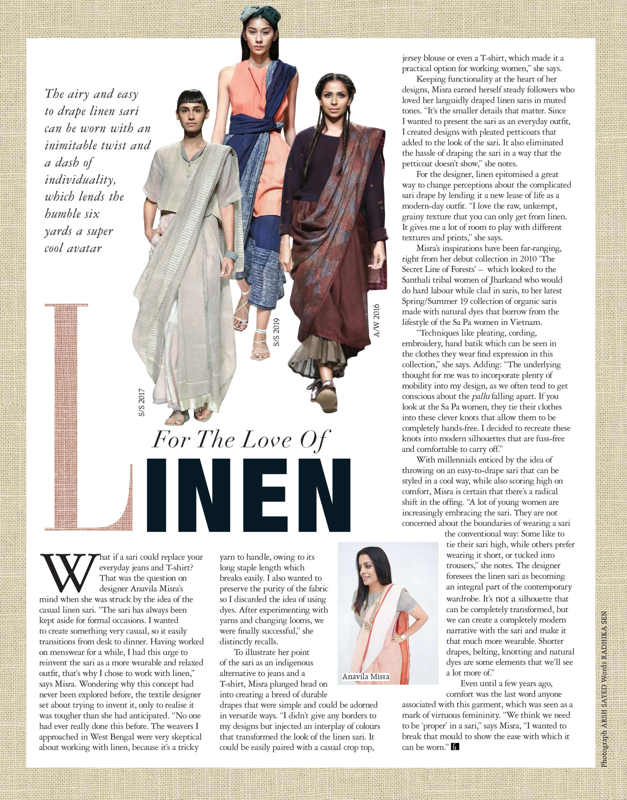 Meet designer Anavila Misra, whose linen saris are quite the rage among fashionistas.Leonardo da Vinci said, “Simplicity is the ultimate sophistication.” And for a lot of reasons, designer Anavila Misra.