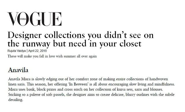 A time in between time; a space quiet and slow. This season ‘Inbetween’, Anavila’s SS’18 collection brings together cherished dreams and distant memories to rejoice the stillness in you.