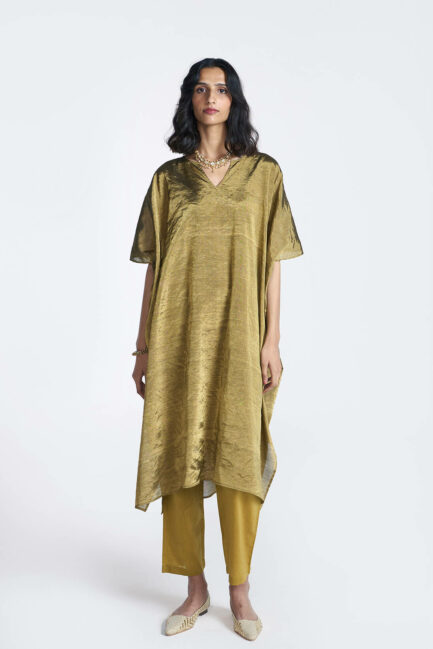 Antique Gold Zari Kaftan Set