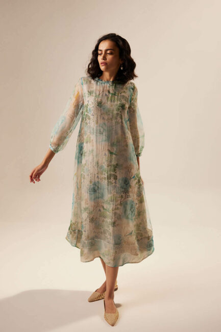 Blue Printed Organza Estella Dress