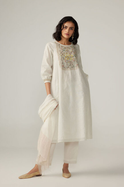 Ivory Kusum Applique Kurta Set