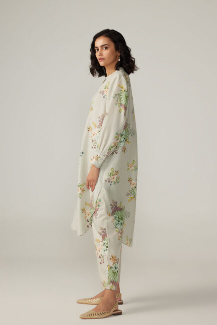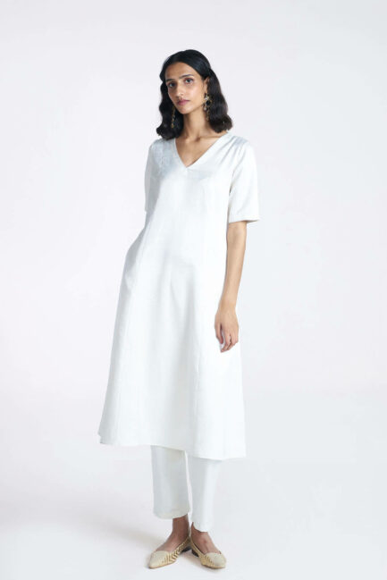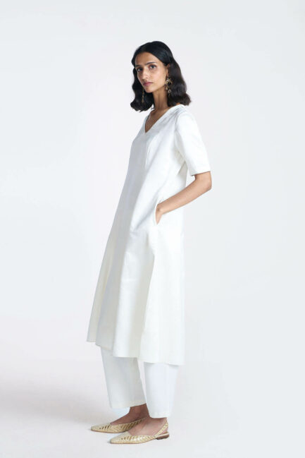 Ivory Satin Long Kurta Set