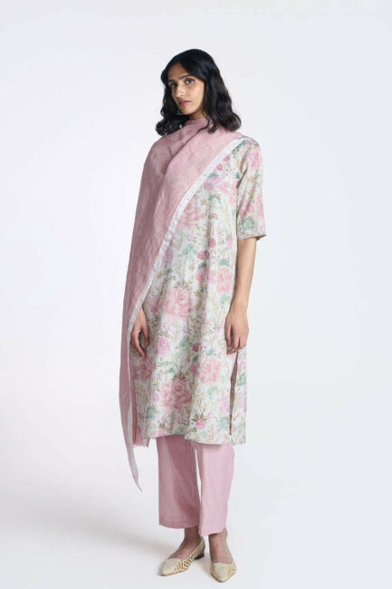 Blush Printed Silk Kameez Set