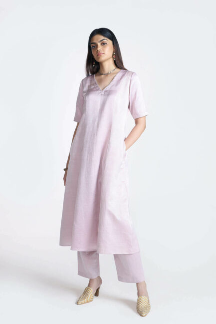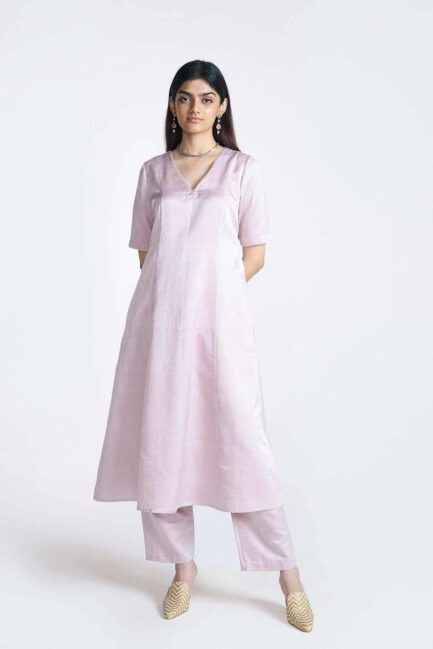 Blush Satin Long Kurta Set