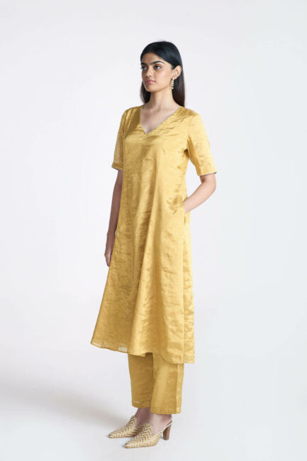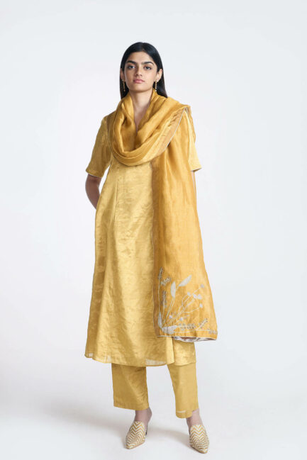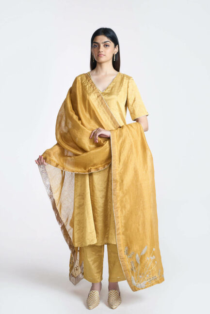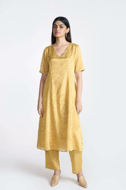 Gold Zari Long Kurta Set