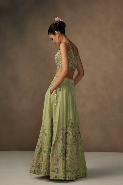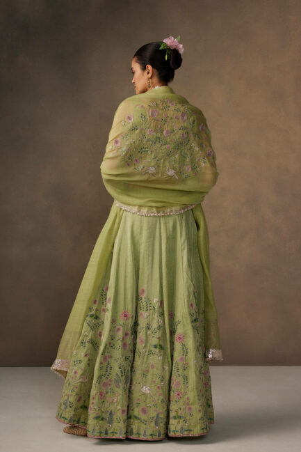 Green Applique and Embroidered Lehenga