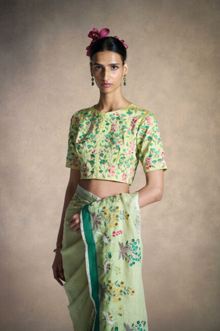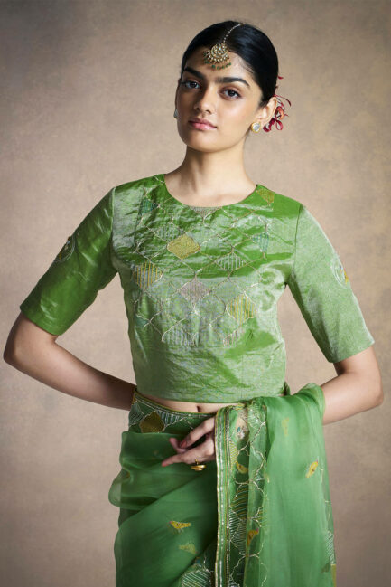 Green Mehrab Yoke Blouse