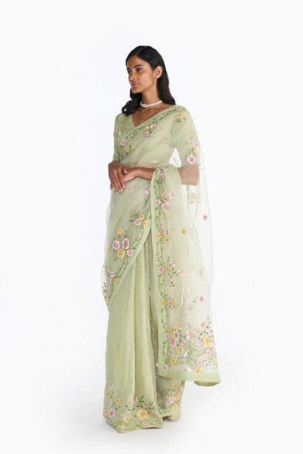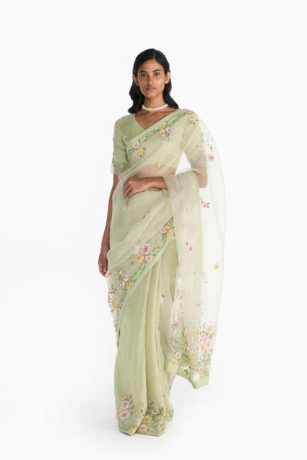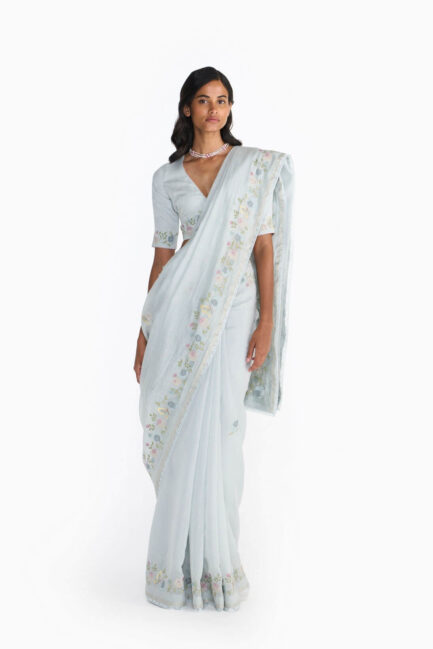 Pearl Blue Applique Sari