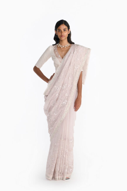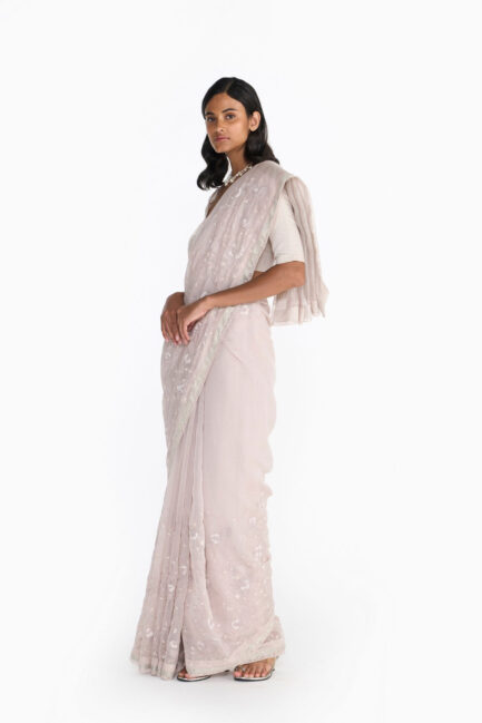 Rose Smoke Detailed Sari