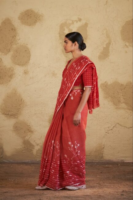 • Red Khejri Linen Sari