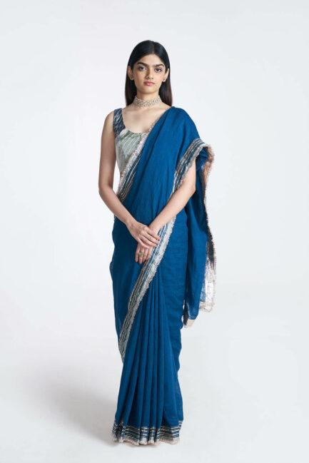 Midnight Blue Gota Kinaari Linen Sari