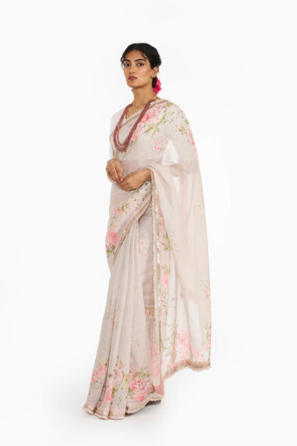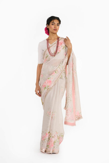 • Oyster Printed Sari