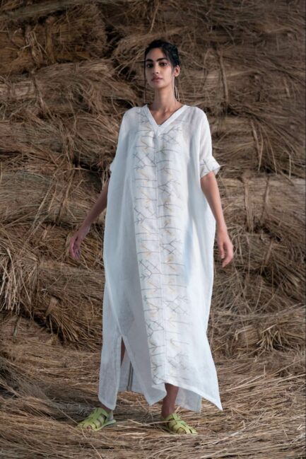 Phula Jamdani Linen Kaftan