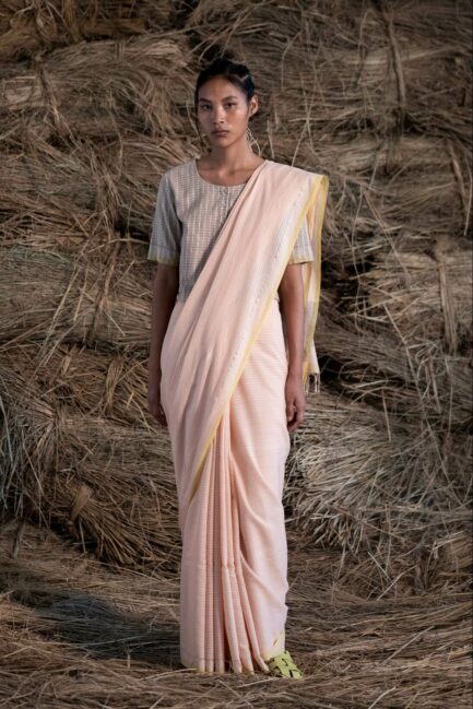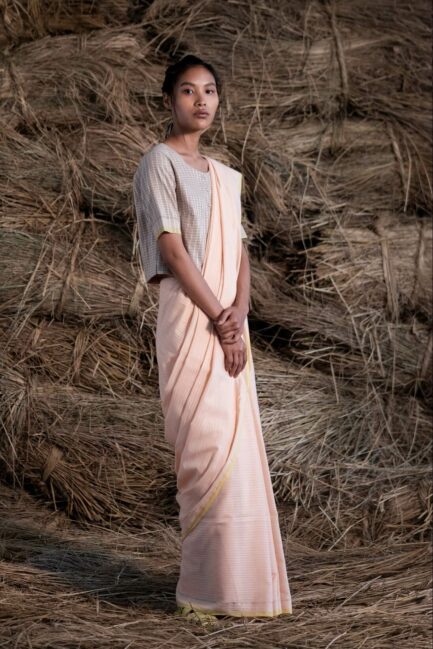 Peach Grisma Dhari Sari
