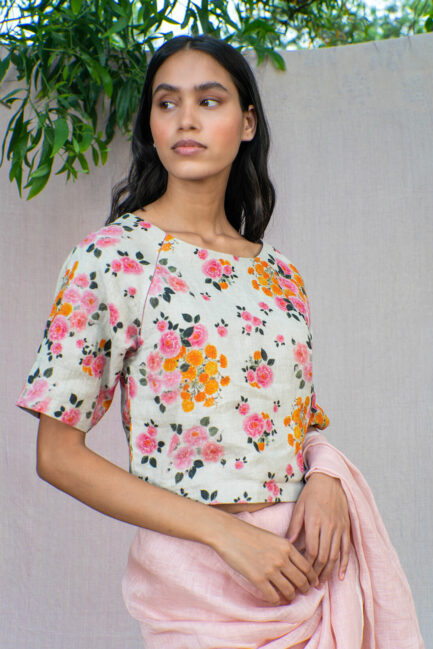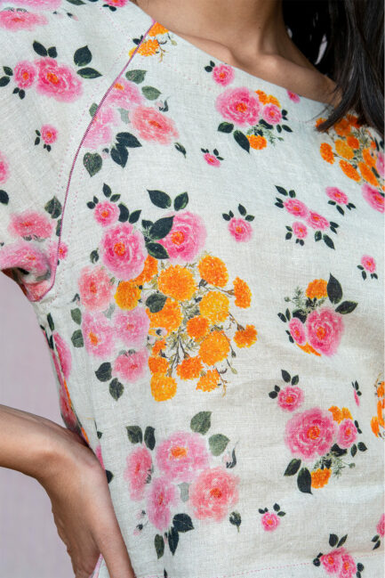 Roses and Marigold Raglan Linen Blouse