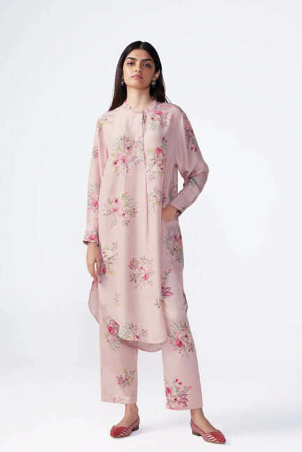 Blush Printed Silk Kameez Set