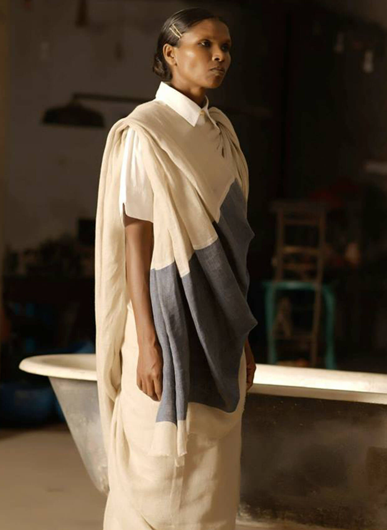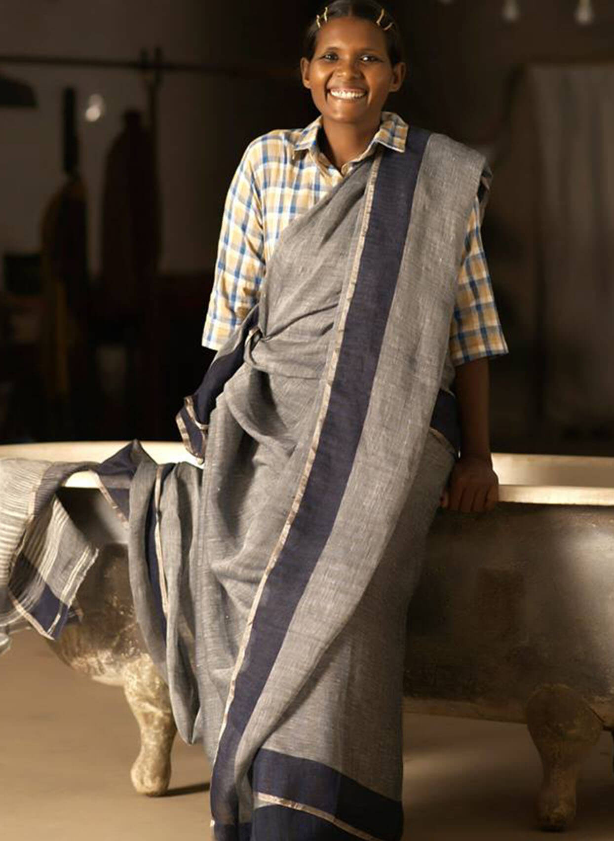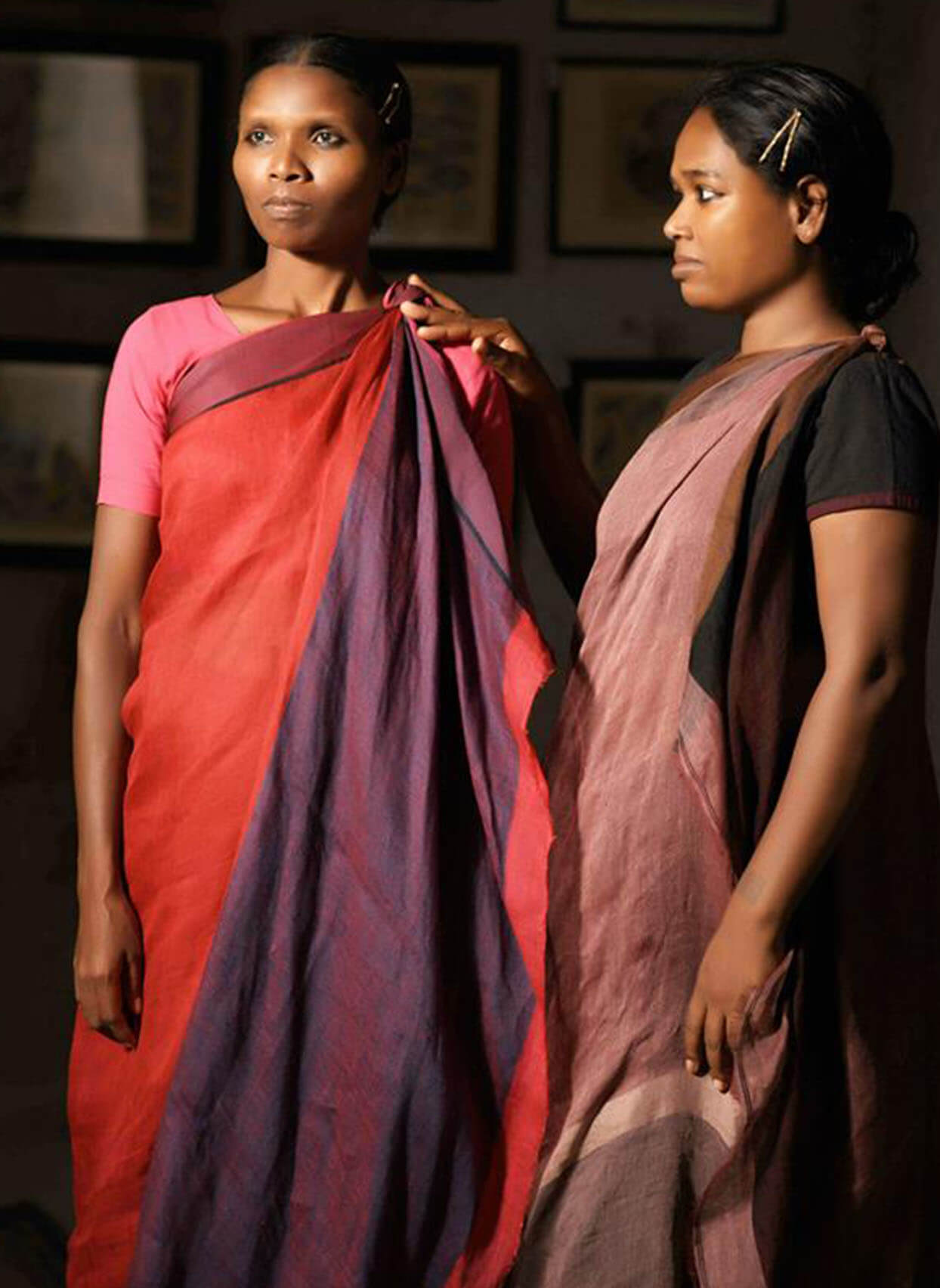 Santhal is a campaign dedicated to the tribal artisans who adorn the sari most beautifully through their daily chores! These women from Jharkhand have been at the very core of our work and design. Their hand applique technique of khatwa finds its place in most of our seasonal work and classics. This is where the artist becomes the muse.
