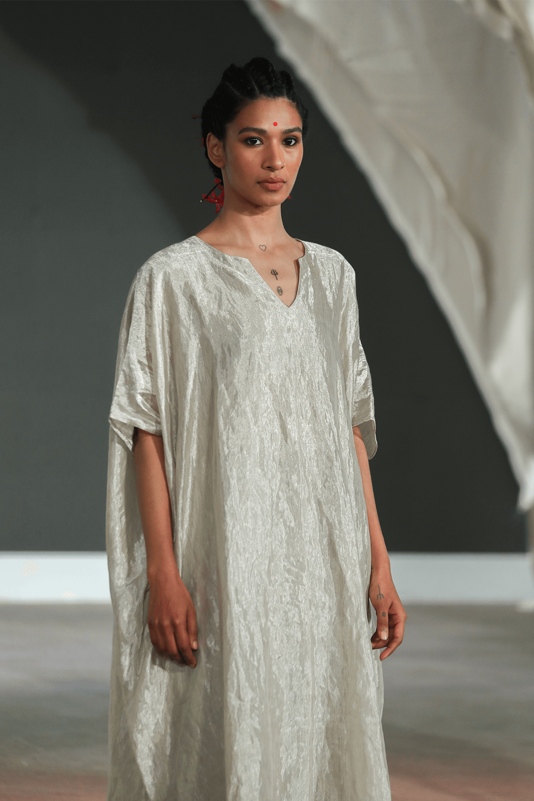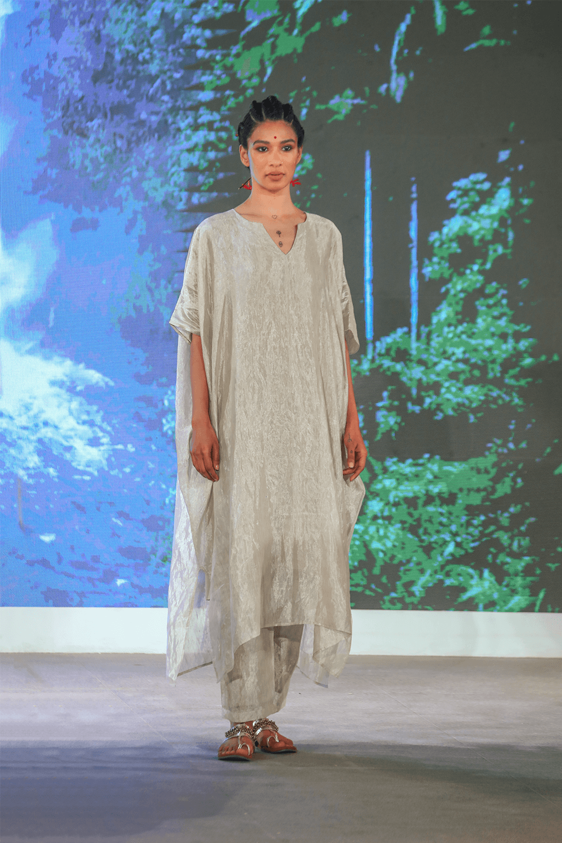 This chic and easy kaftan In Zari paired with zari trousers is surely made to uplift your festive spirits.