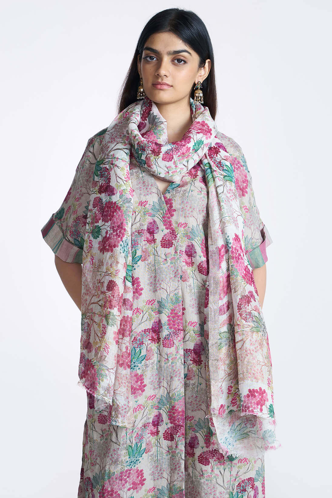 Berry Forest Print Linen Dupatta