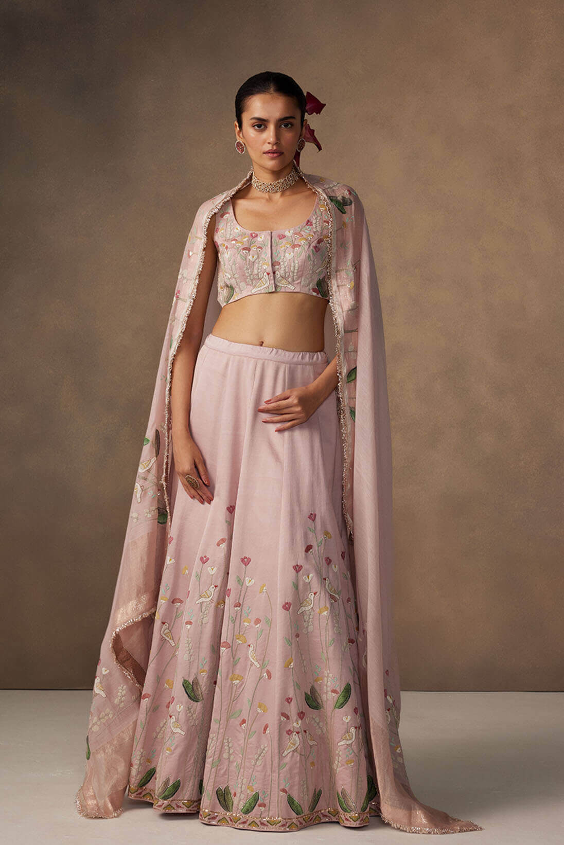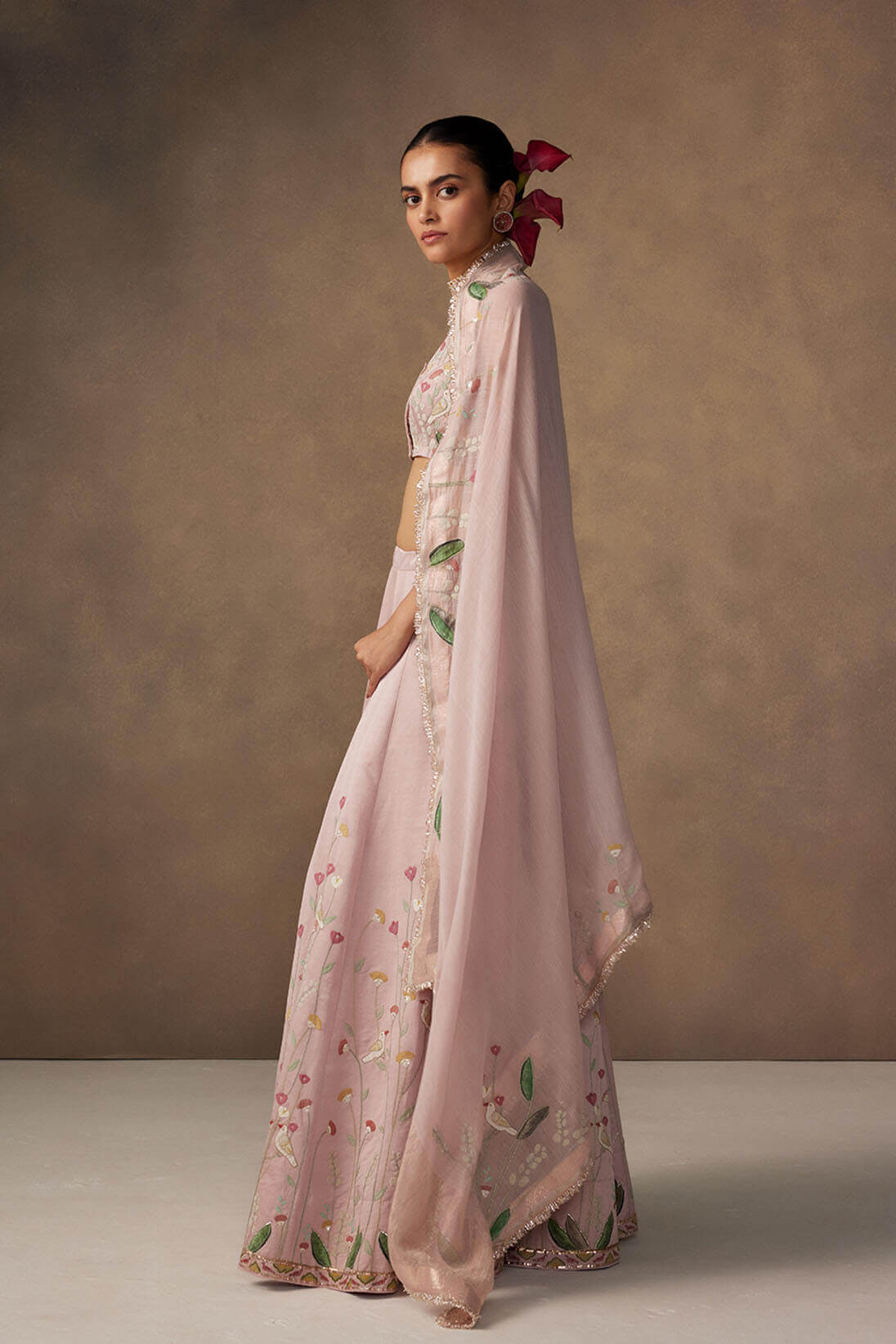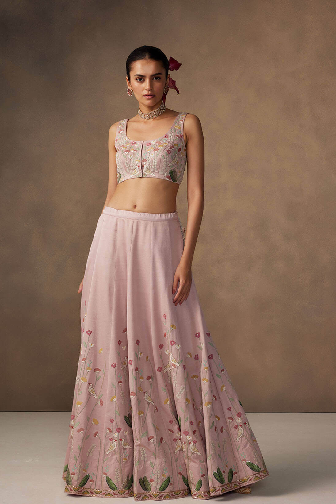 Blush Applique and Embroidered Lehenga and Blouse Set