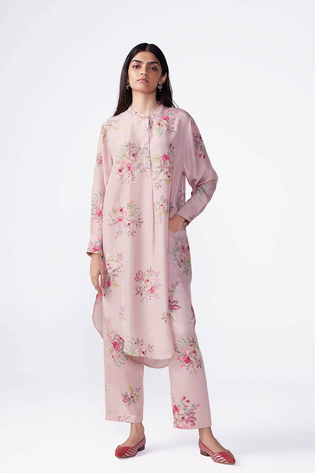 Blush Printed Silk Kameez Set