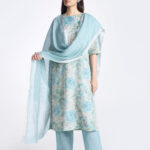 Soft Blue Printed Zari Nova Set