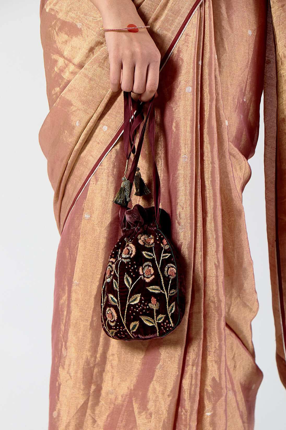 Corded charms detail potli