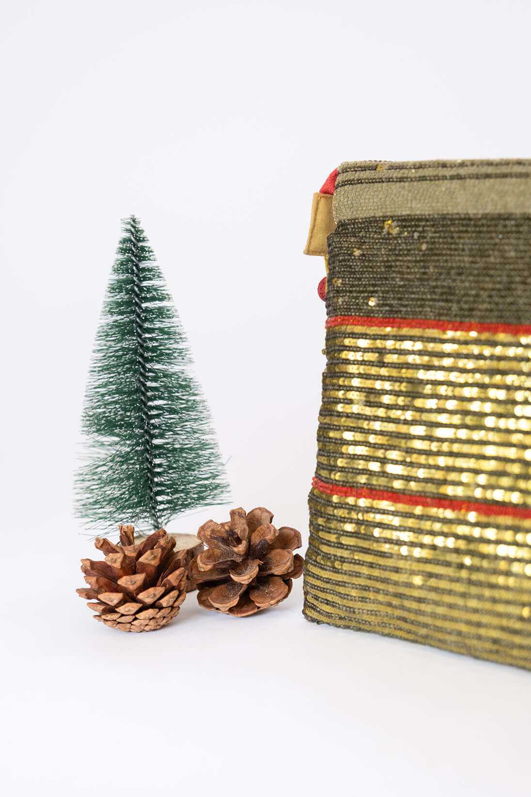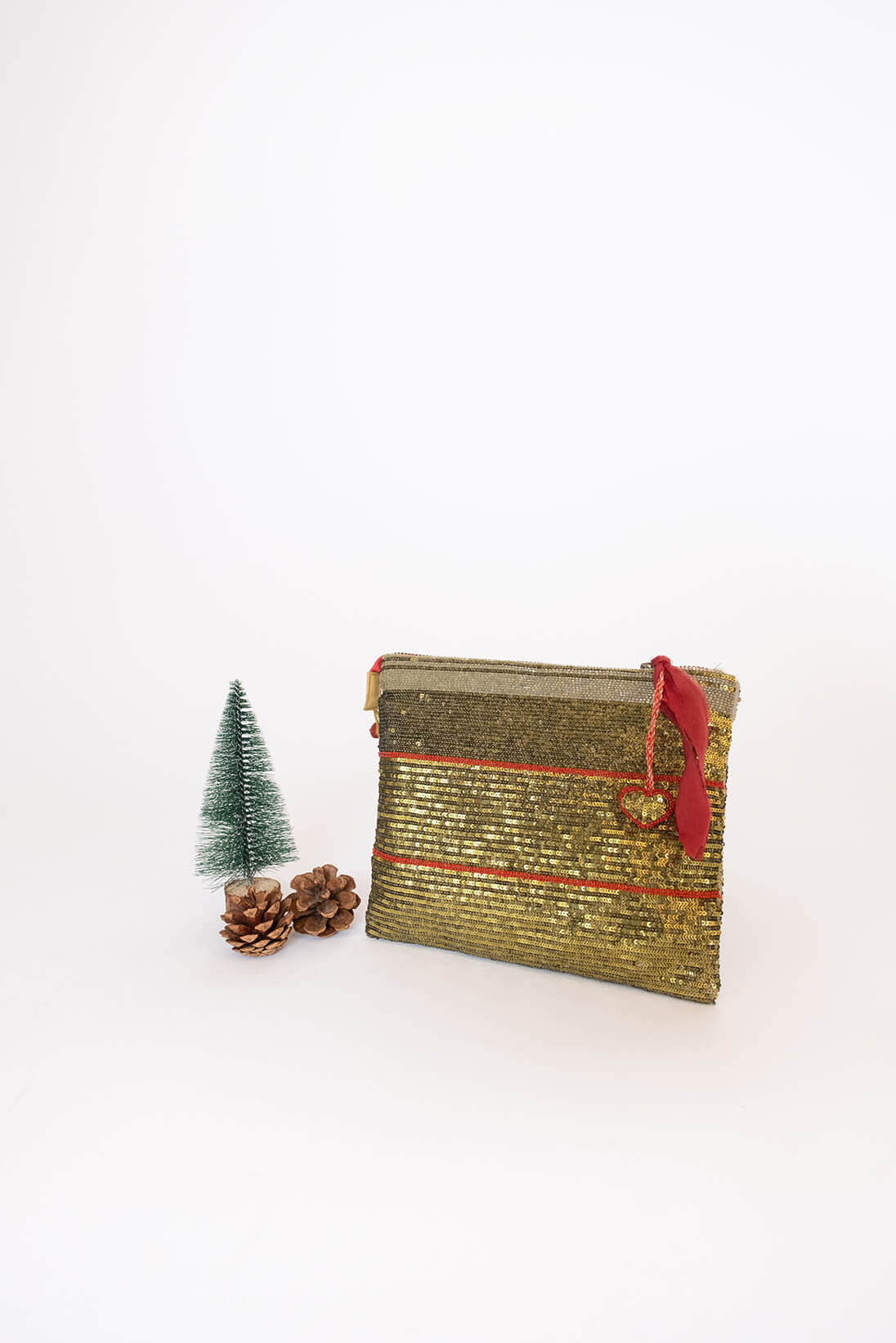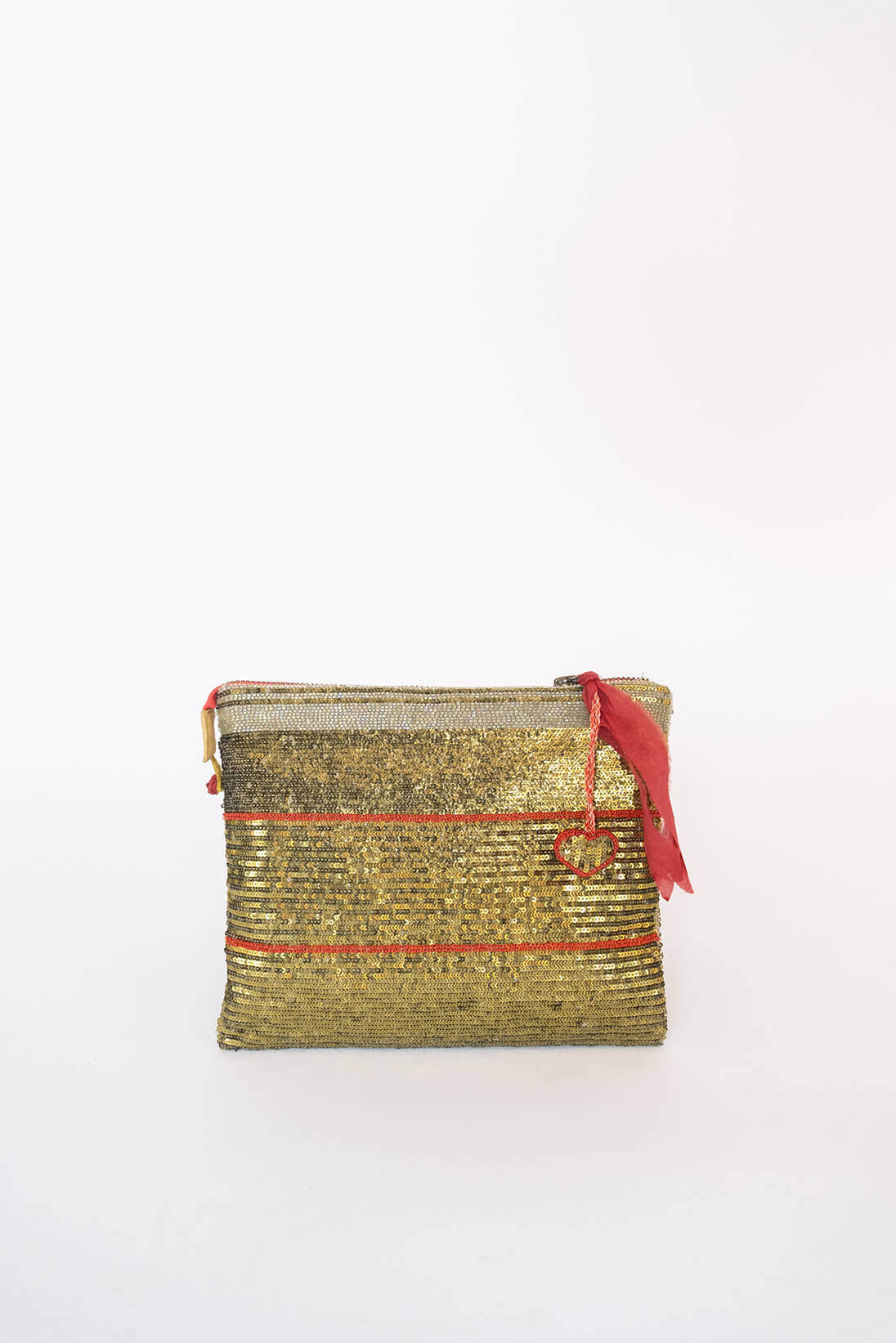 Lime green Hand embroidered linen pouches with sequins, lined with silk, equipped with metal zippers