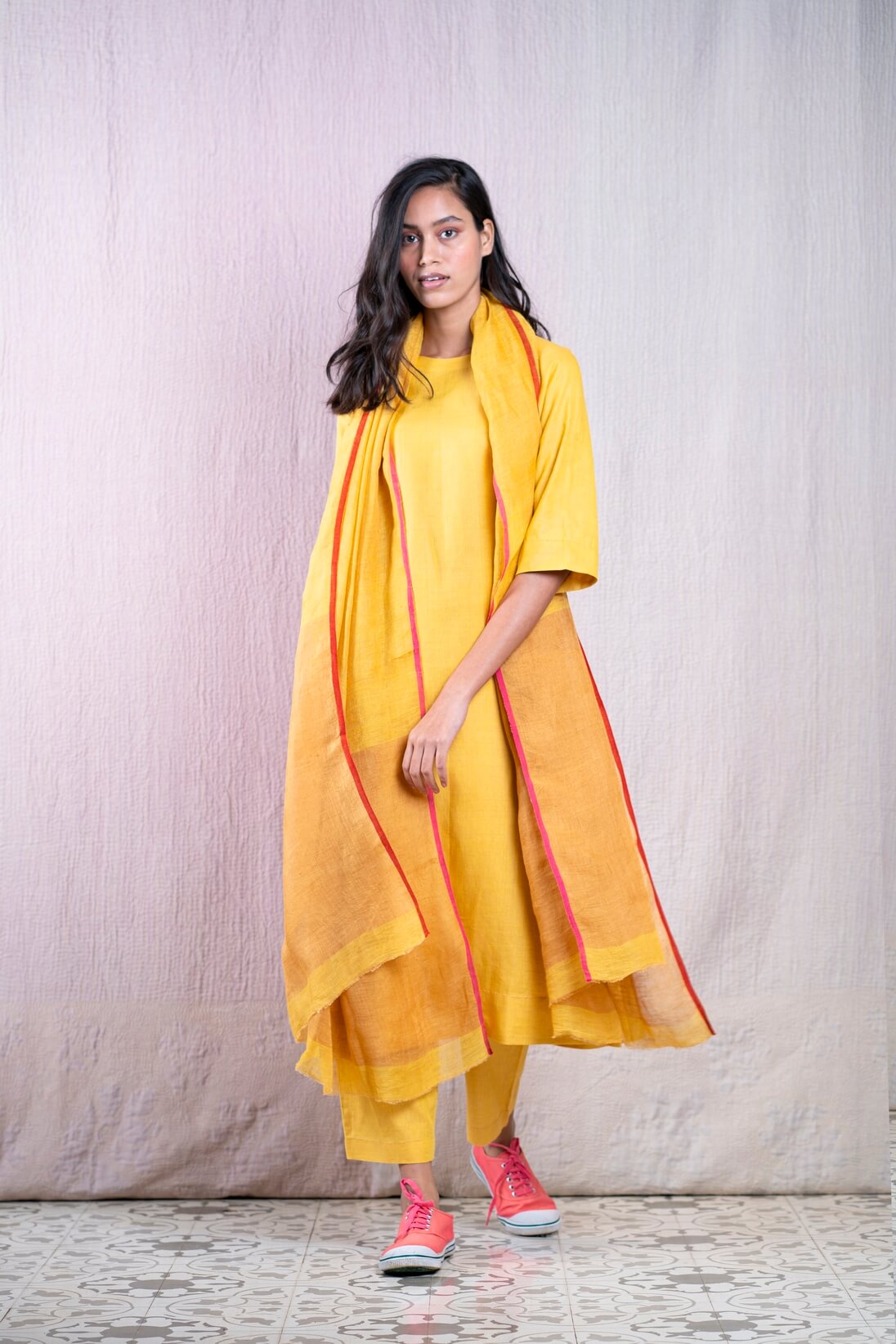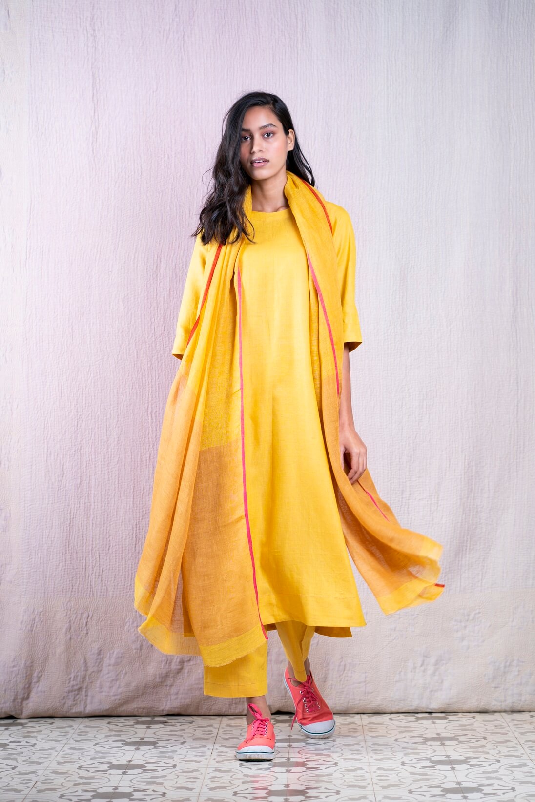 Our 100% linen handwoven dupattas come with contrast selvedges to make these extra special.