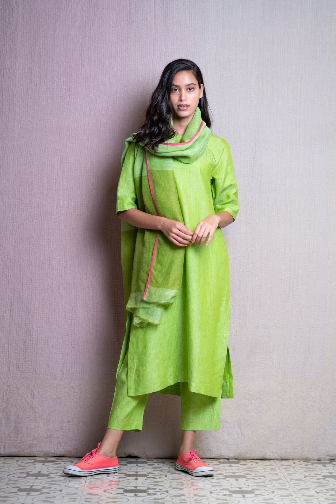 Our 100% linen handwoven dupattas come with contrast selvedges to make these extra special.