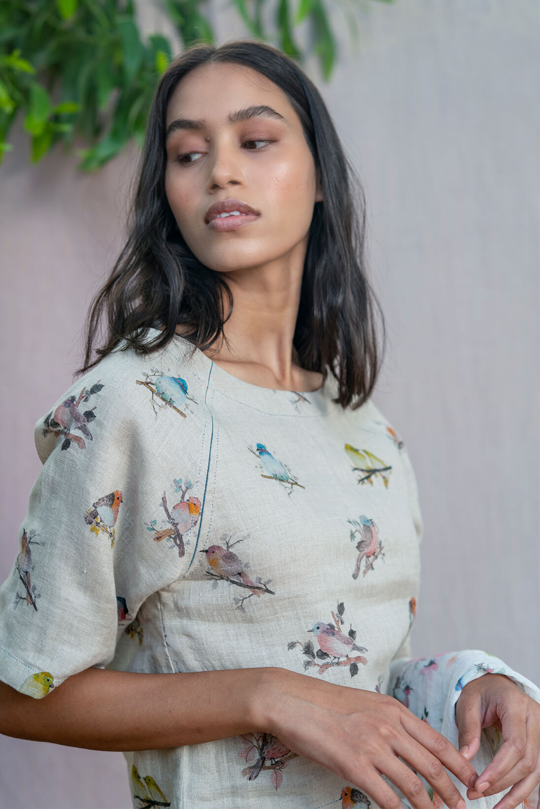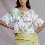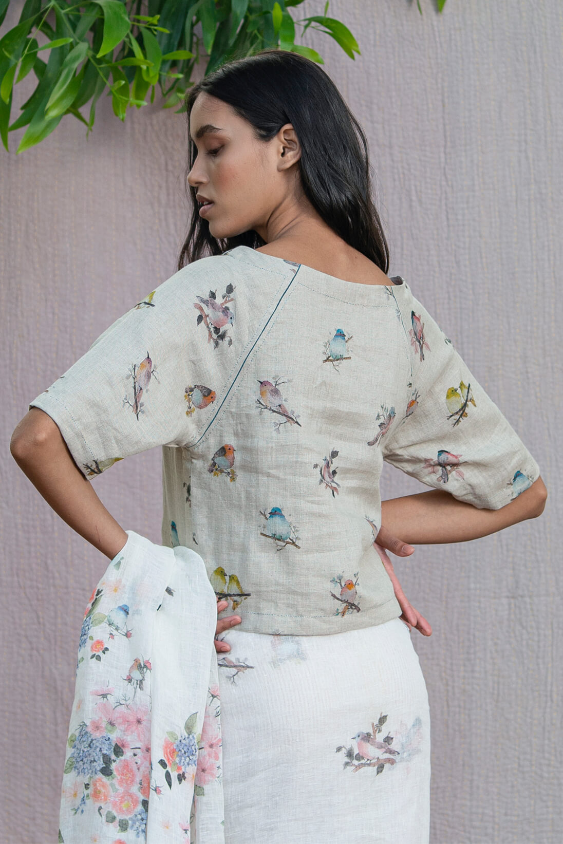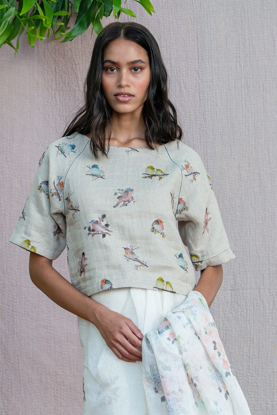 The raglan sleeves blouses have been designed for ease and extra comfort. They come in beautiful bloom prints hand developed in our studio and then digitally transferred on the textiles. The contrast color faggoting highlights the raglan sleeves. The fabric is 100% linen.