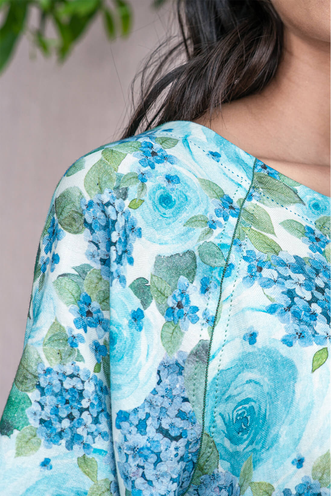 The raglan sleeves blouses have been designed for ease and extra comfort. They come in beautiful bloom prints hand developed in our studio and then digitally transferred on the textiles. The contrast color faggoting highlights the raglan sleeves. The fabric is 100% cotton herringbone.
