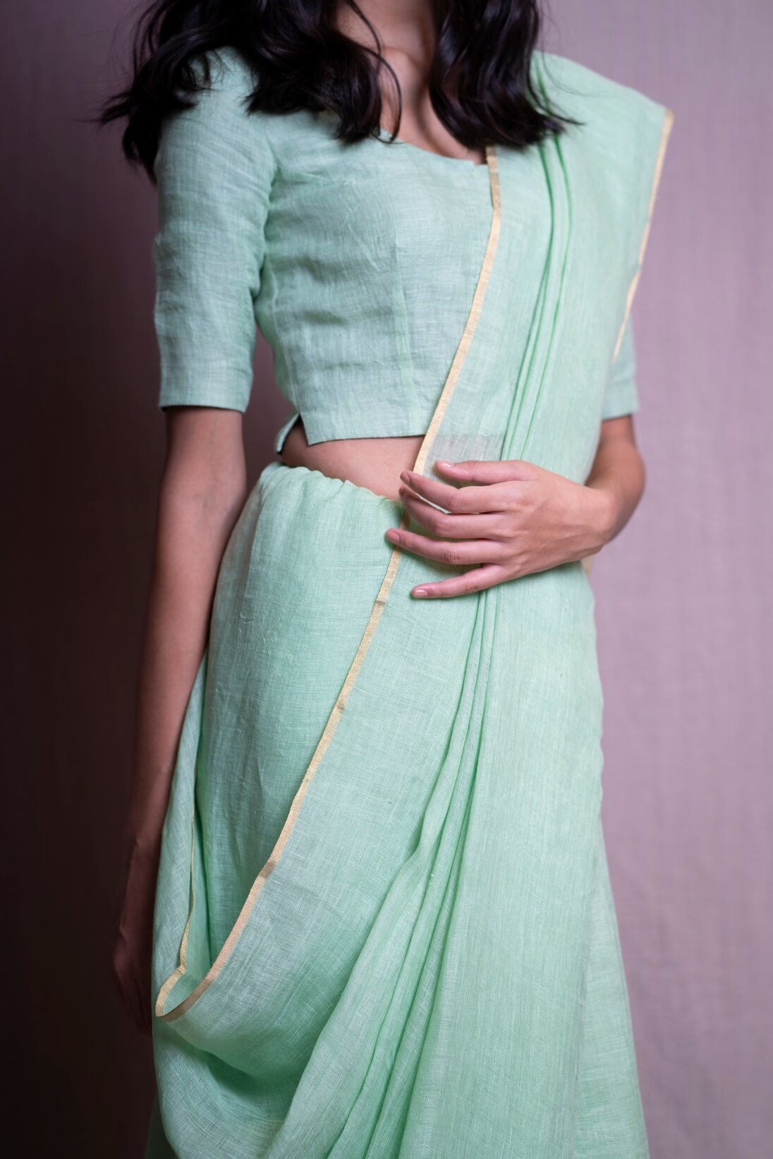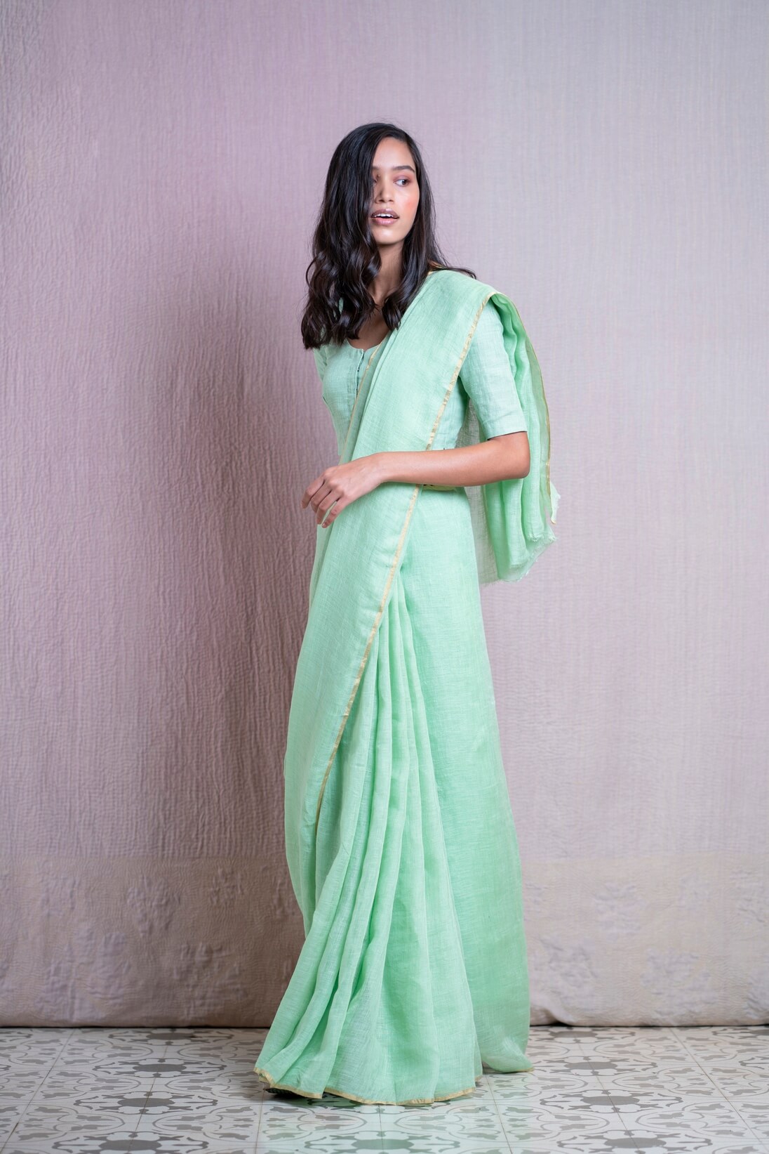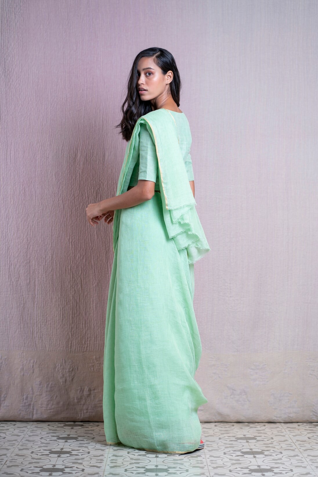 - Gulmarg Green Linen Sari