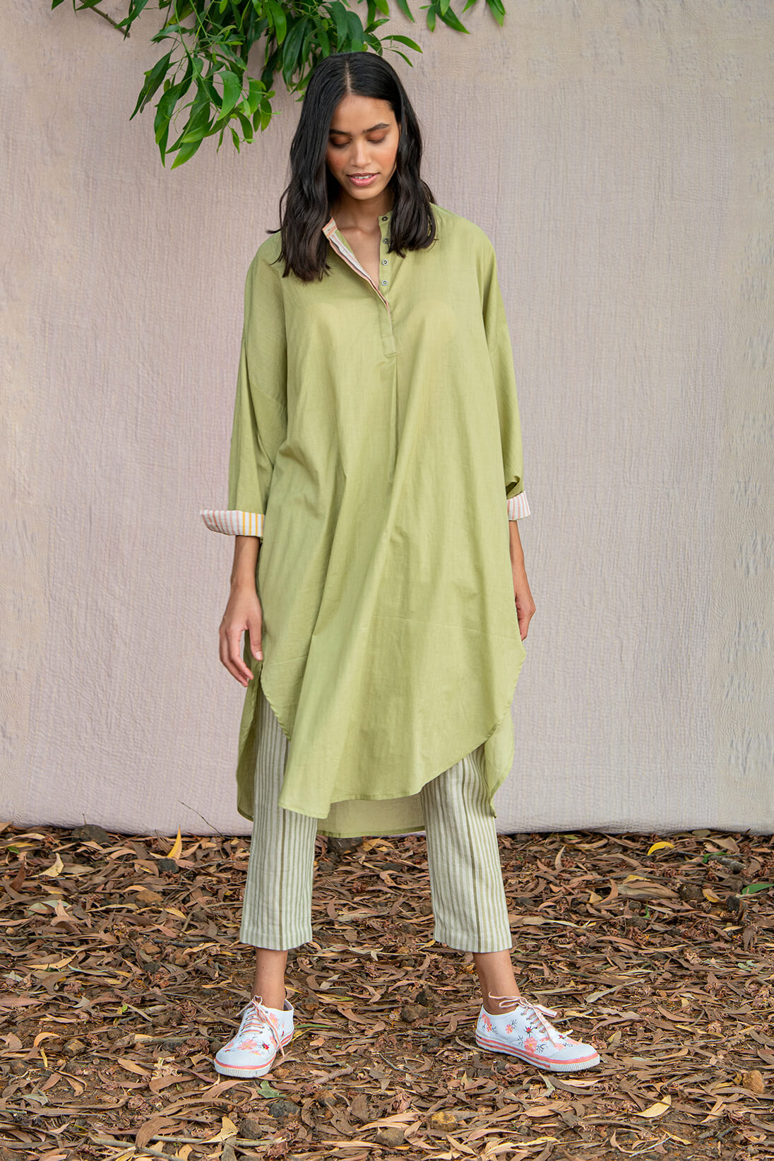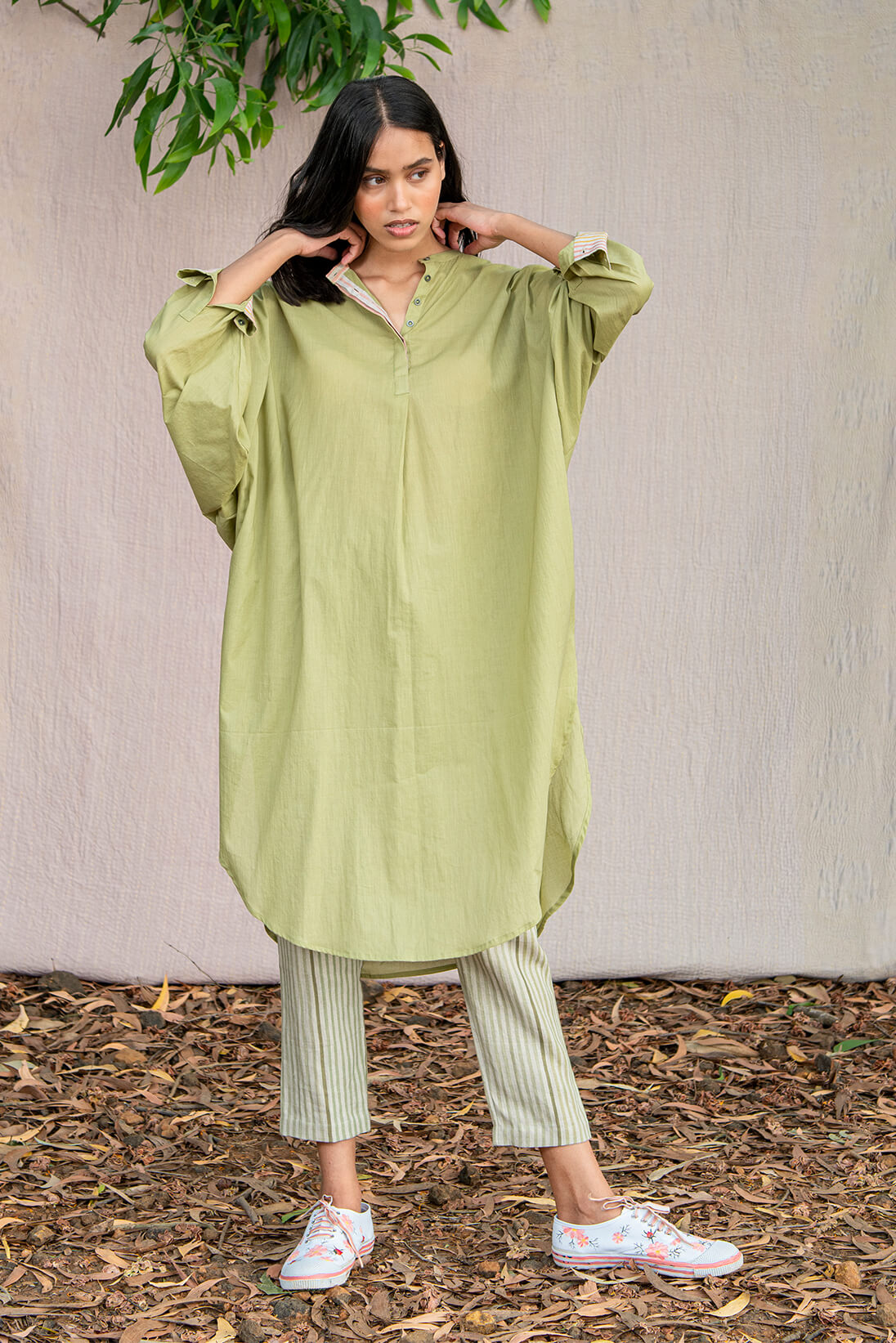 Our extra roomy garden shirt has been inspired by the Indian kurta style. Made from organic cotton this shirt is a wardrobe essential.