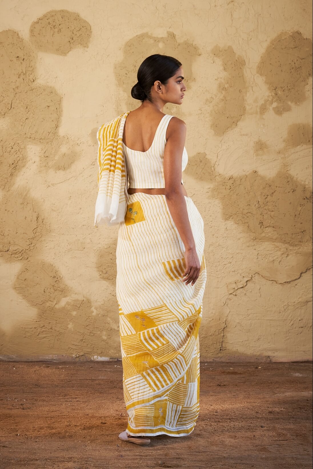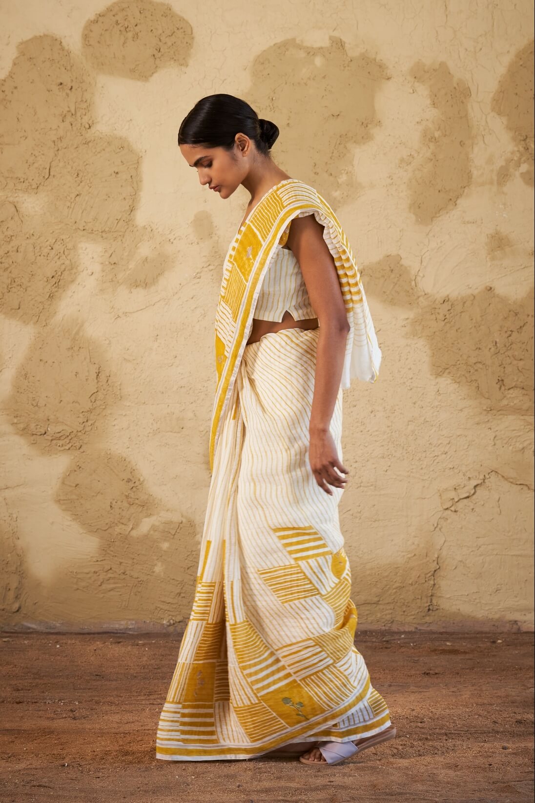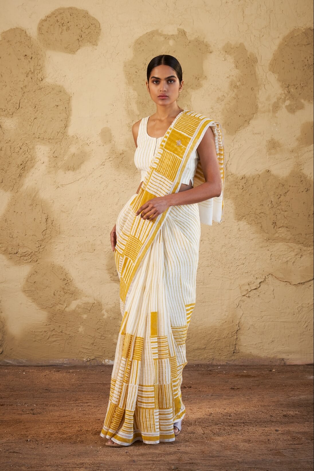 - Yellow Chowk Linen Sari