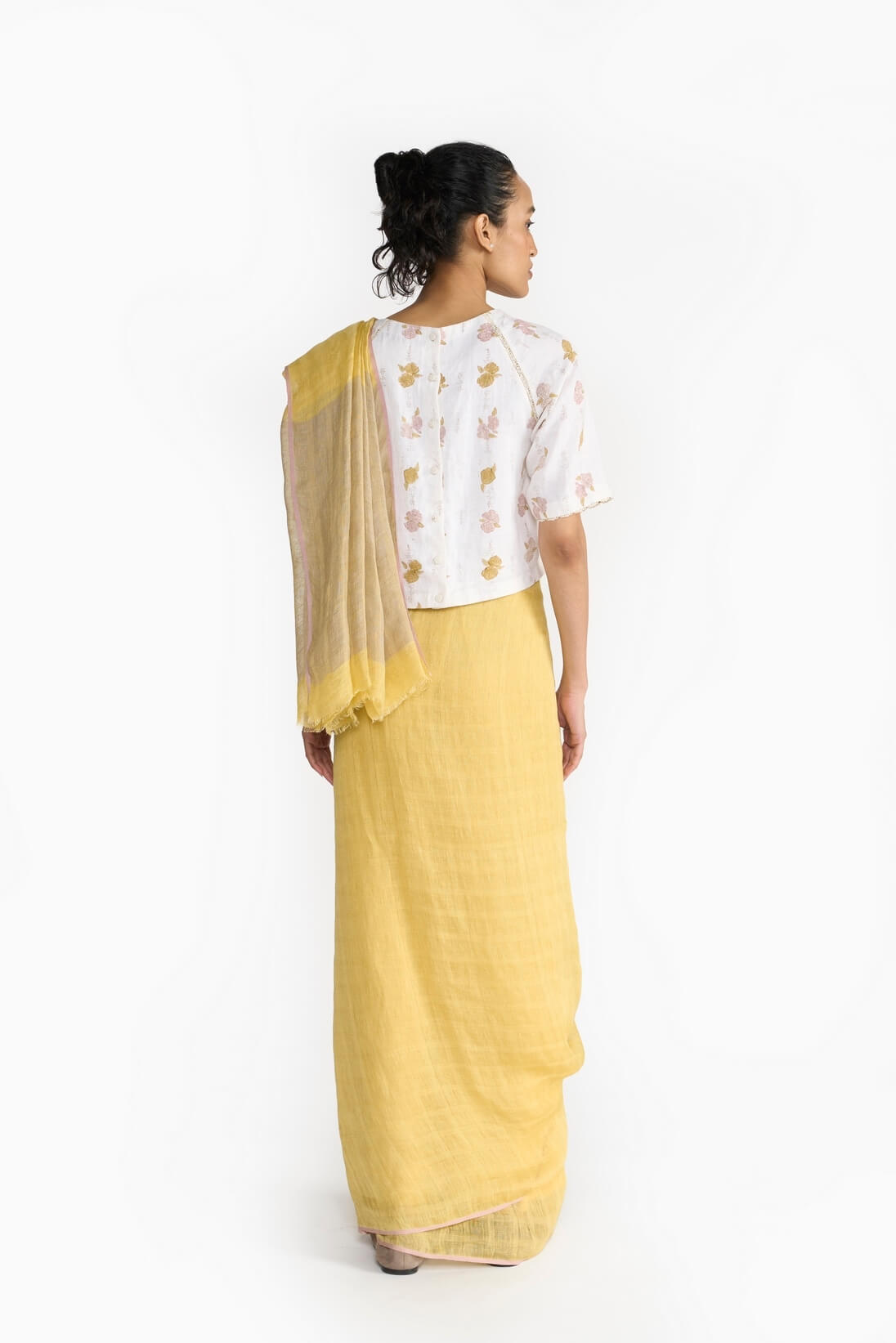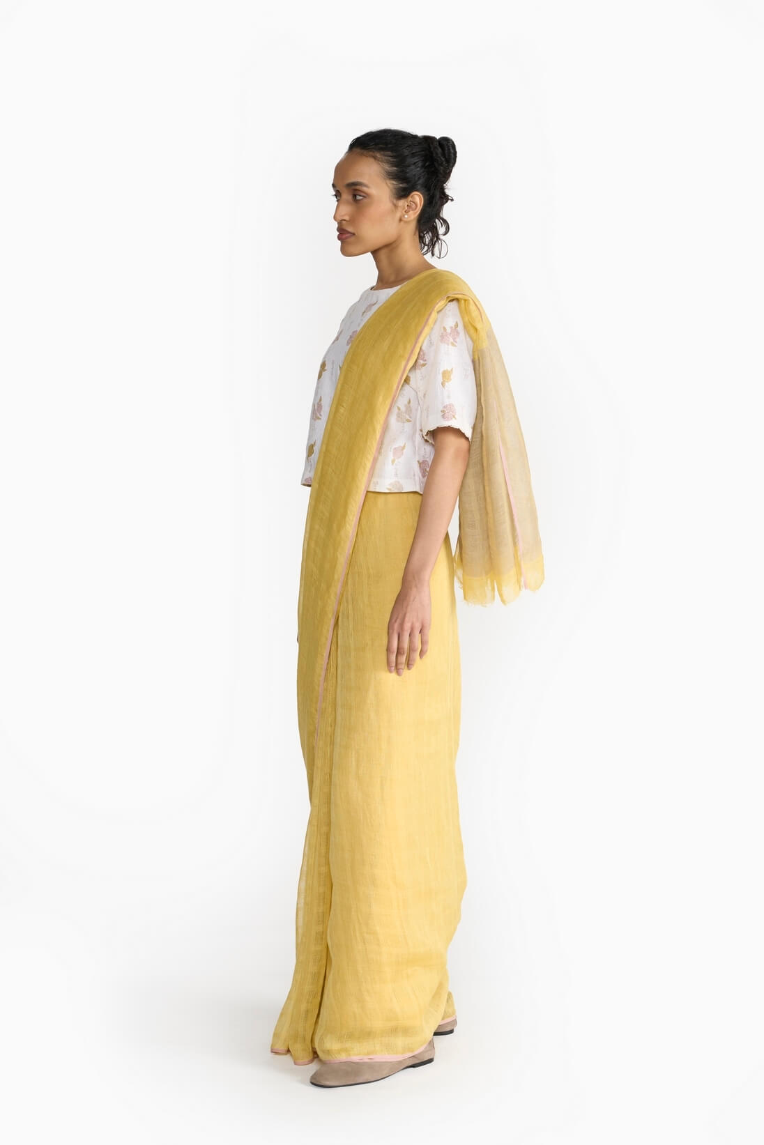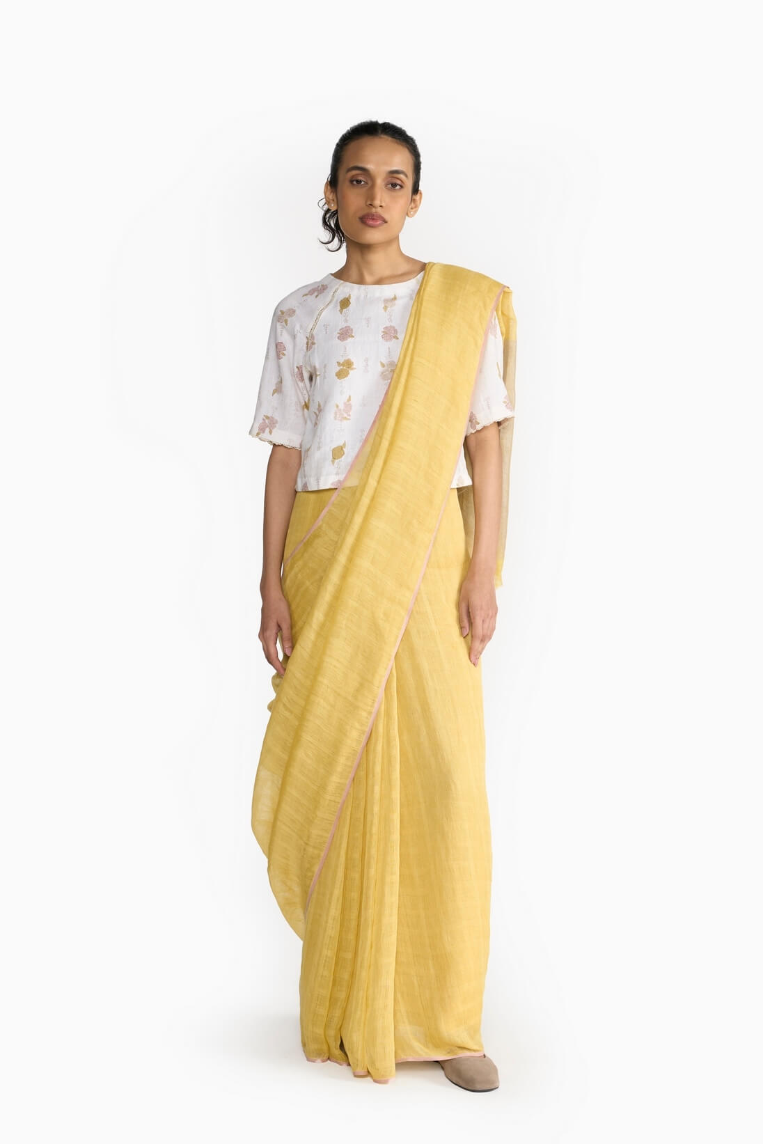 Soft checkered sari is an ode to classic missing checkered pattern of the traditional south indian weaves. Here the play of missing dents forms a summer friendly monochrome handwoven check pattern with fine linen yarns.