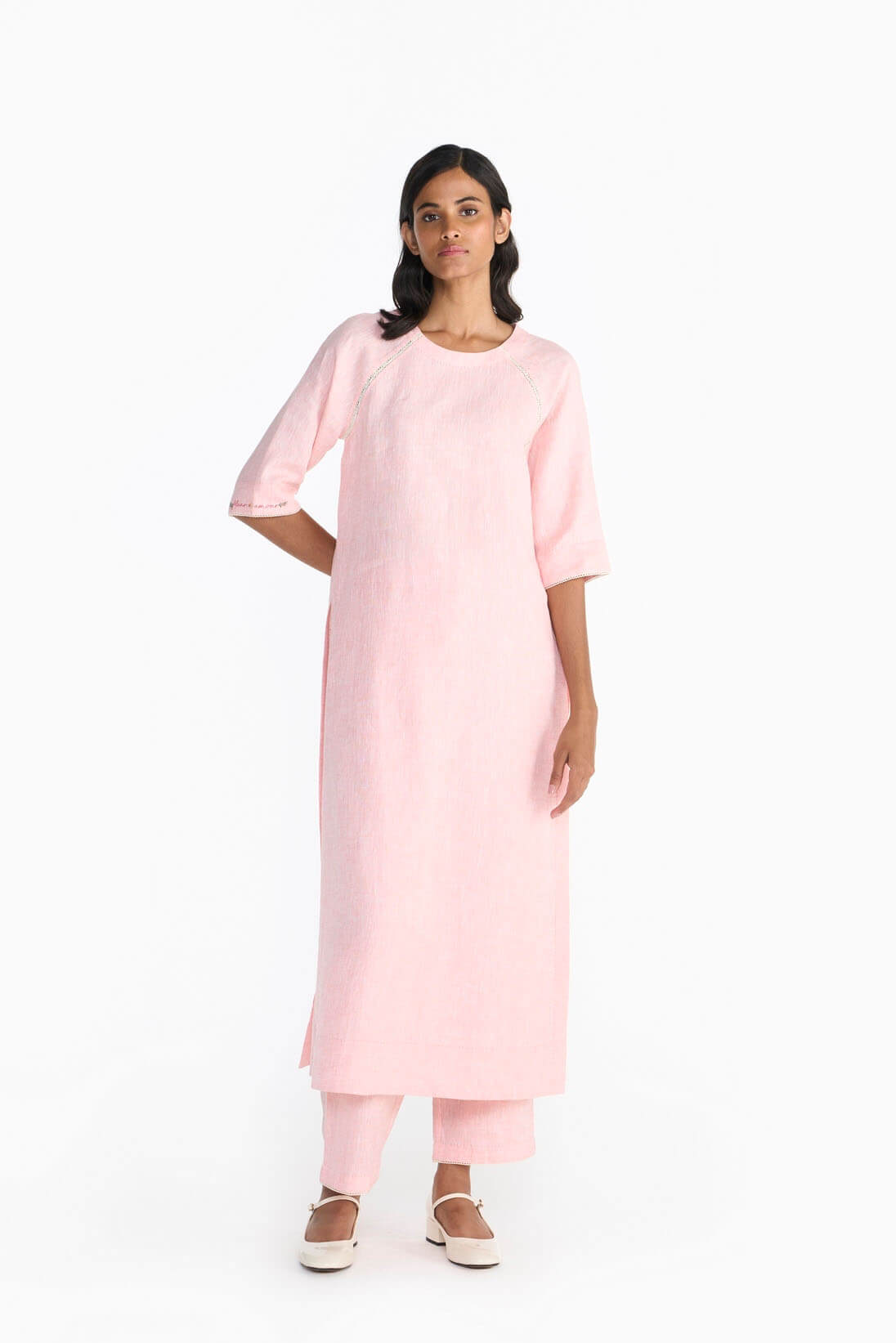 Embrace the timeless elegance of Nova set. Crafted in linen with hand embroidery & lace details, Nova’s flowing silhouette and relaxed fit exudes effortless sophistication. The breathable fabric ensures comfort all day long making it perfect for summer gatherings.