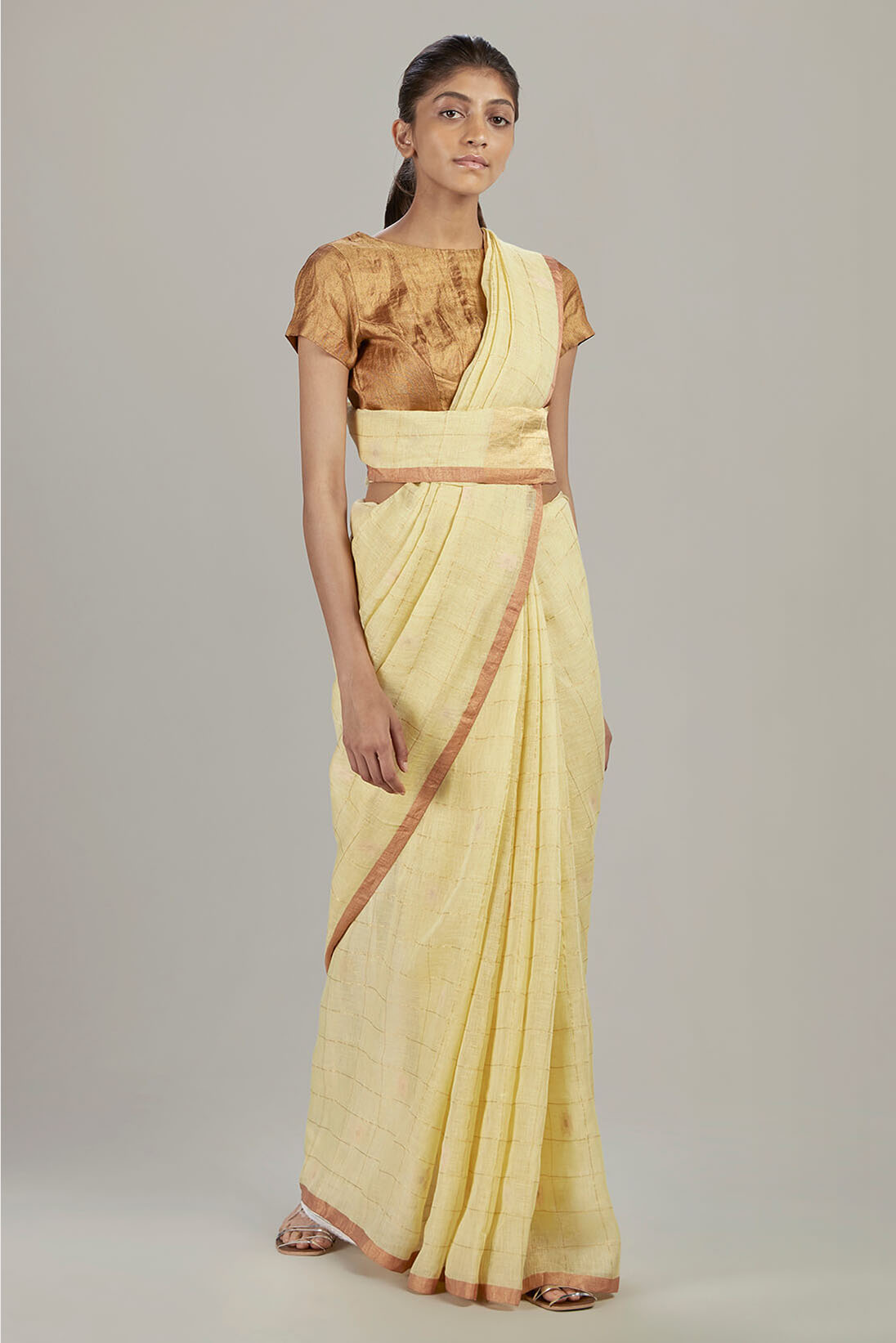 Festive checkered jamdani sari