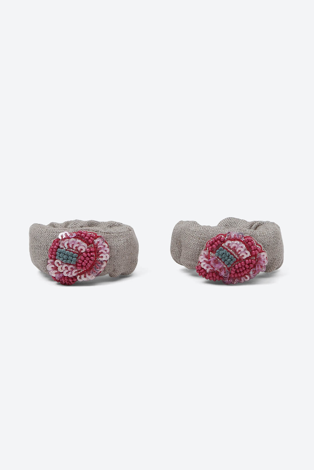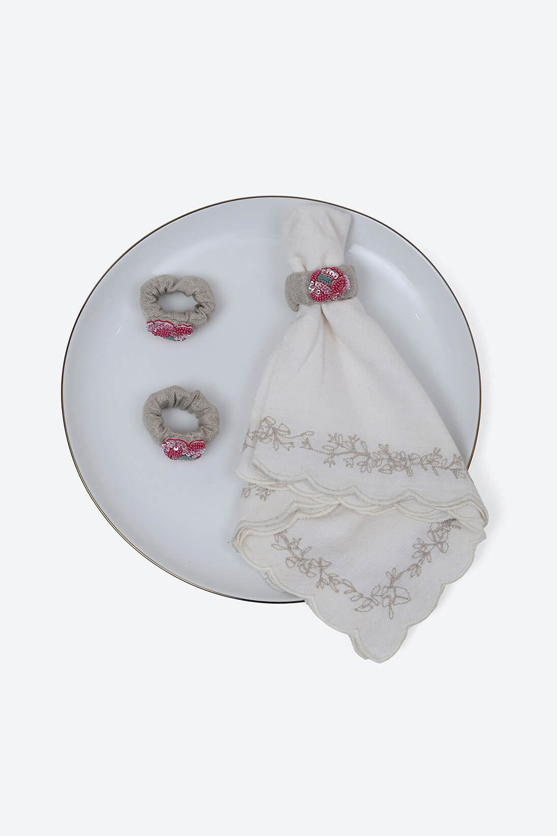 Elasticated napkin ring crafted from linen with Handembroidered floral motif detail for table arrangements